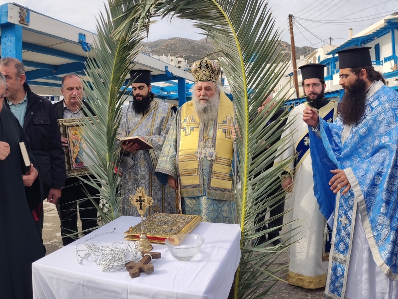Αντίστοιχα, των Ιερών Ακολουθιών της εορτής των Θεοφανίων στην Πάρο, προεξήρχε ο Θεοφιλέστατος Επίσκοπος Κεράμων κ. Βαρθολομαίος.