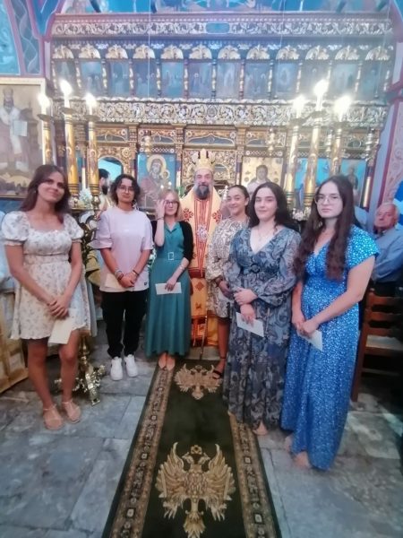 Προ της απολύσεως της Θείας Λειτουργίας, ο Σεβασμιώτατος βράβευσε τους νέους του νησιού που πέτυχαν την εισαγωγή τους στα ανώτατα εκπαιδευτικά ιδρύματα της χώρας, προσφέροντάς τους χρηματικές υποτροφίες, ως ένδειξη πατρικής αγάπης και ενίσχυσης στον νέο τους αγώνα.