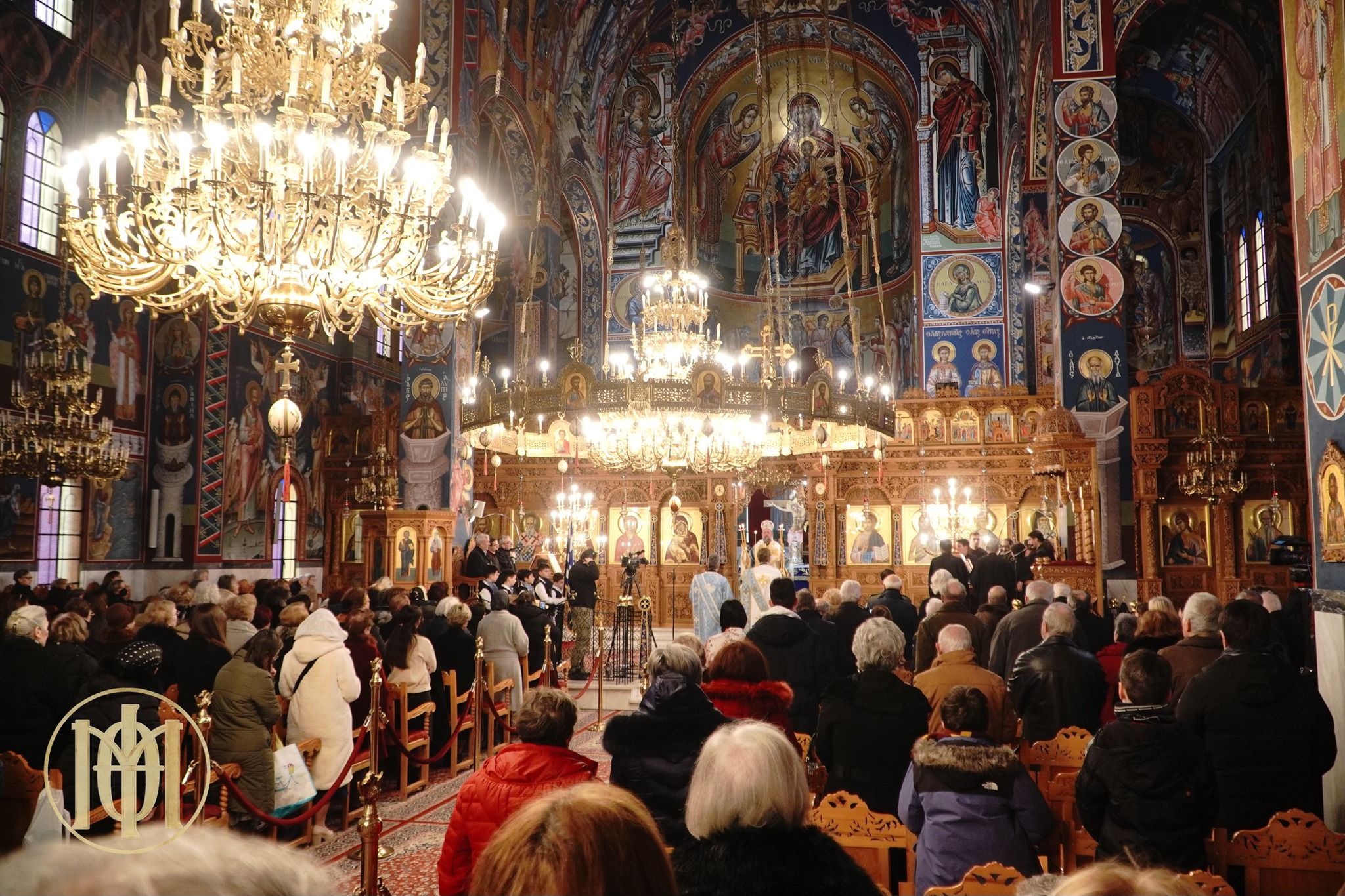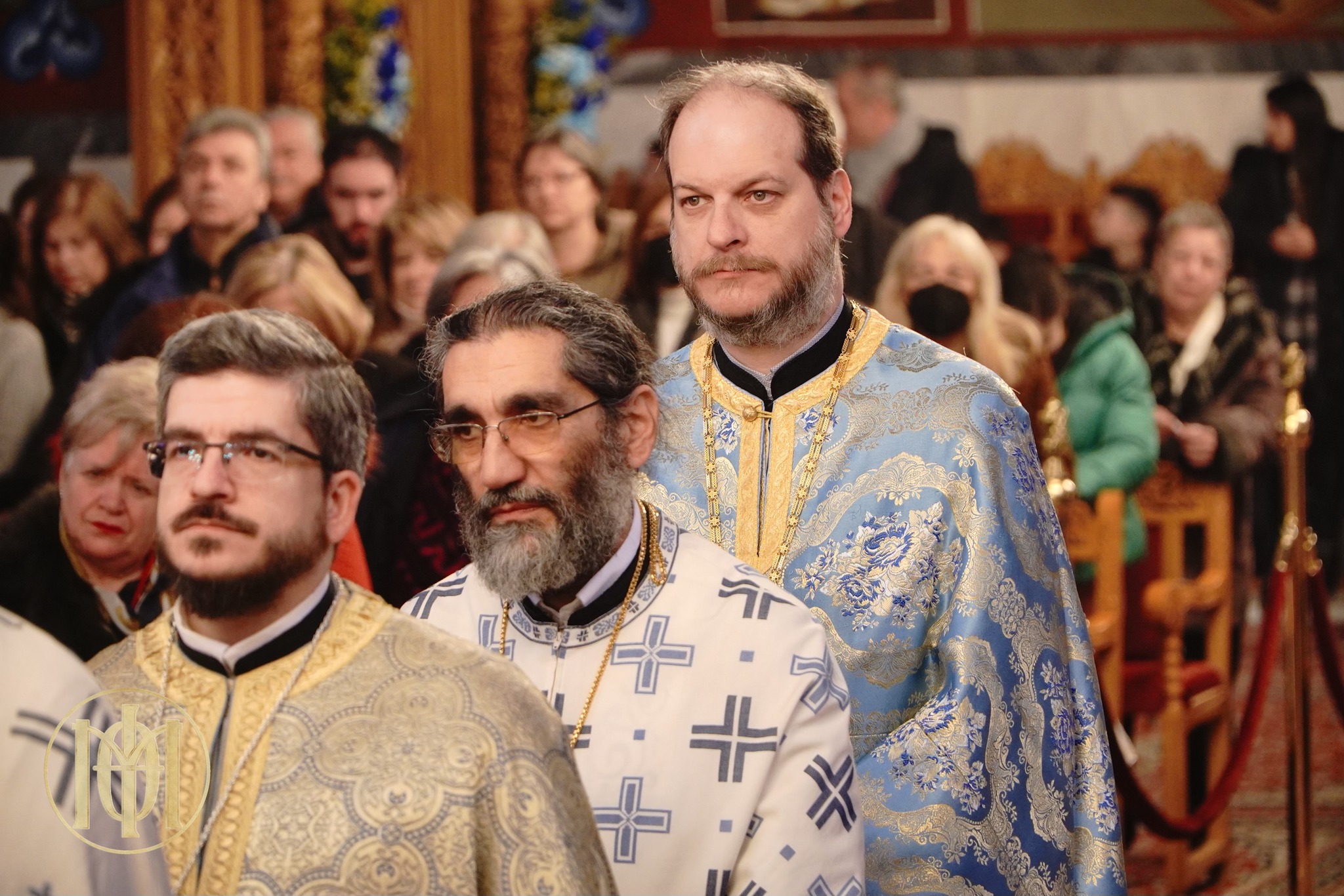 Πριν από την απόλυση ο Επίσκοπός μας ευχαρίστησε τους συλλειτουργούντες κληρικούς για τη συμμετοχή τους στην Πανηγυρική Αρχιερατική Θεία Λειτουργία π. Αλέξιο Παπασταμούλο και π. Ιερόθεο Παπαγρηγορίου από την Ιερά Μητρόπολη Χαλκίδος και π. Δημήτριο Κουκουλεκίδη από την Ιερά Μητρόπολη Λαγκαδά, Λητής και Ρεντίνης, καθώς επίσης και τους μαθητές από τα Σχολεία της Ενορίας που προσήλθαν για να τιμήσουν την Πανήγυρη του Ιερού Ναού.