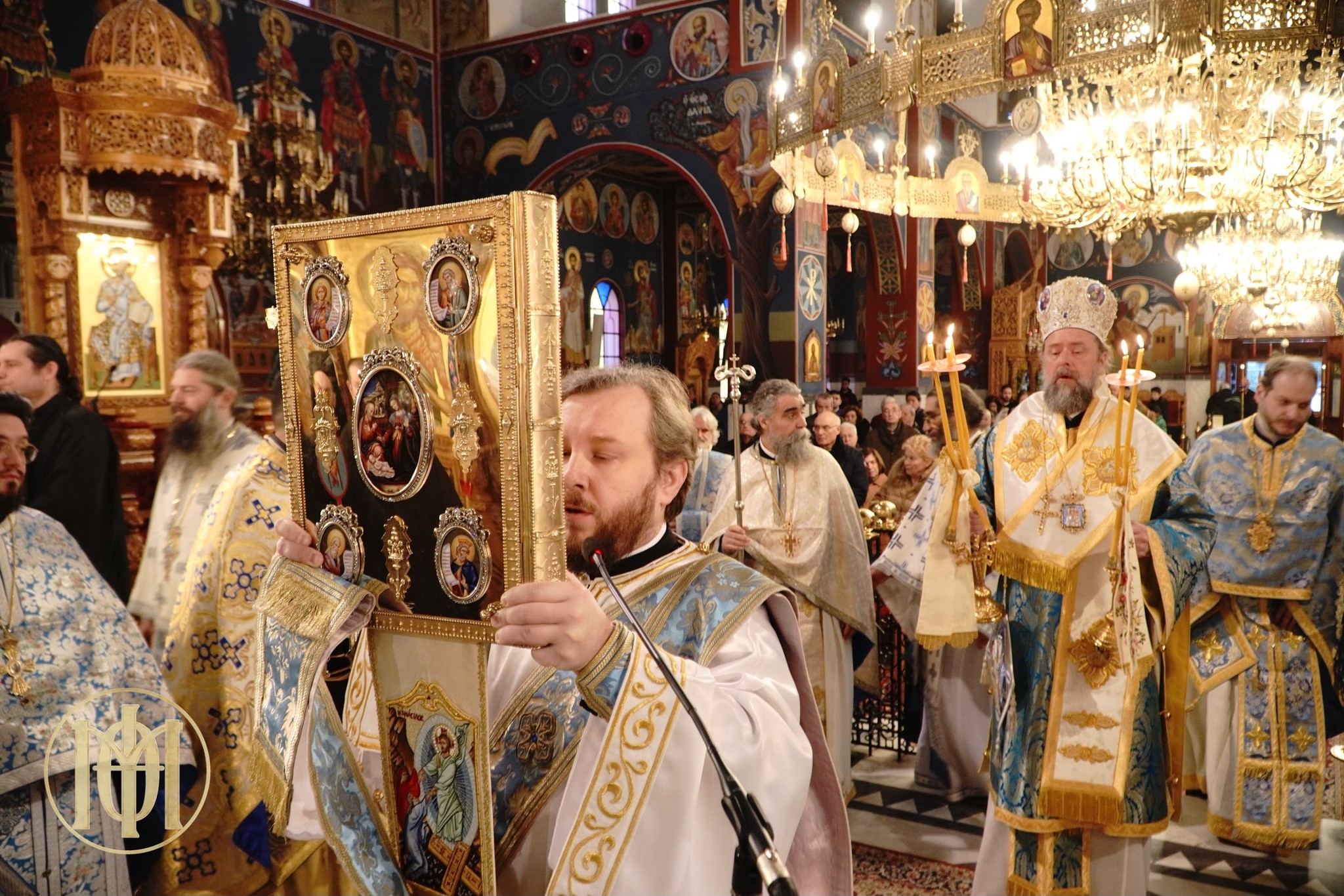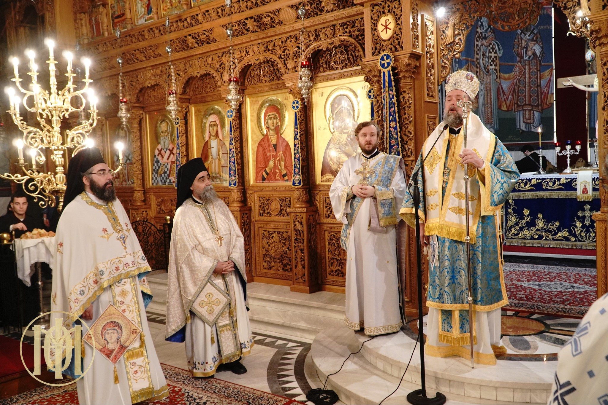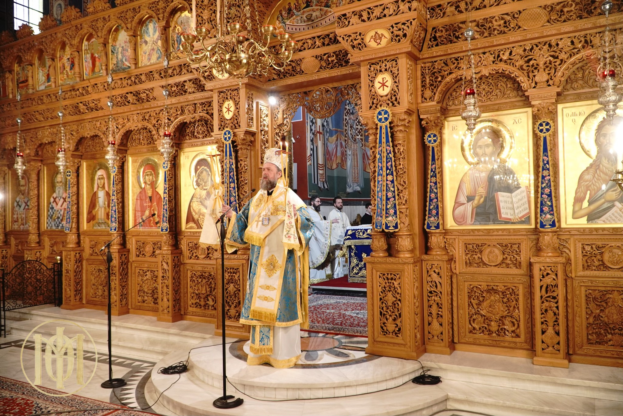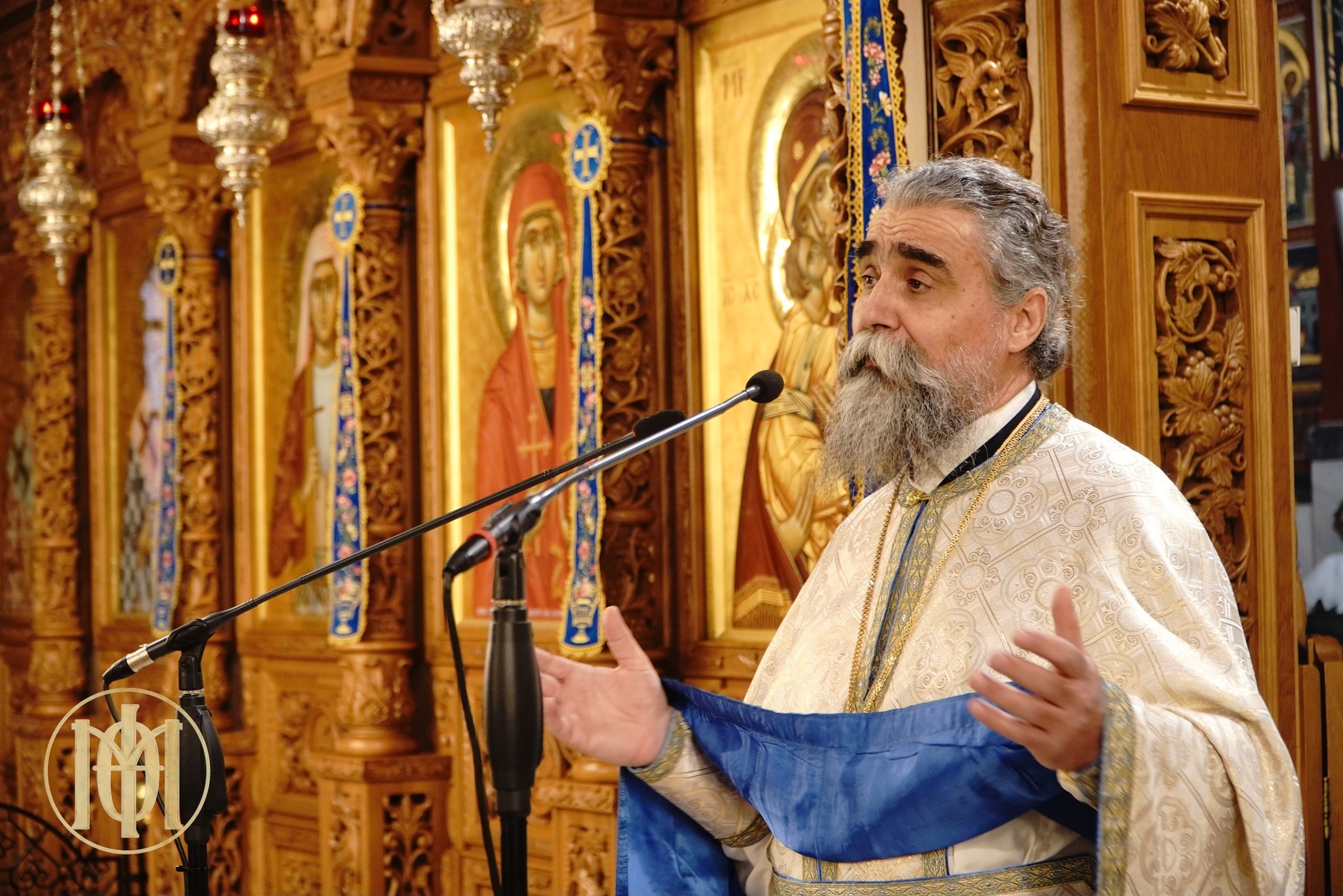 Τον θείο λόγο κήρυξε ο π. Αλέξιος Παπασταμούλος, κληρικός της Ιεράς Μητροπόλεως Χαλκίδος, ο οποίος, αφού μνημόνευσε το θαύμα της διασώσεως της Ιεράς Μονής Βατοπαιδίου, αναφέρθηκε εκτενώς στο πανάγιο πρόσωπο της Υπεραγίας Θεοτόκου.