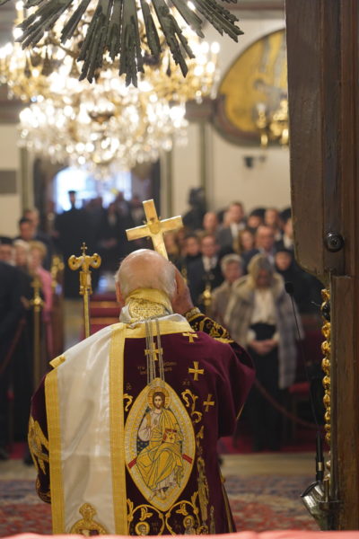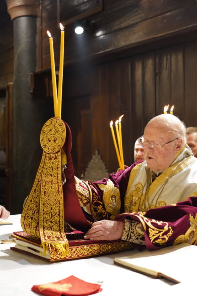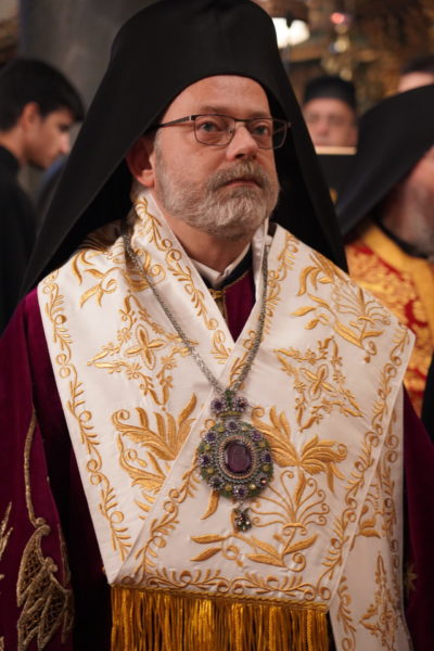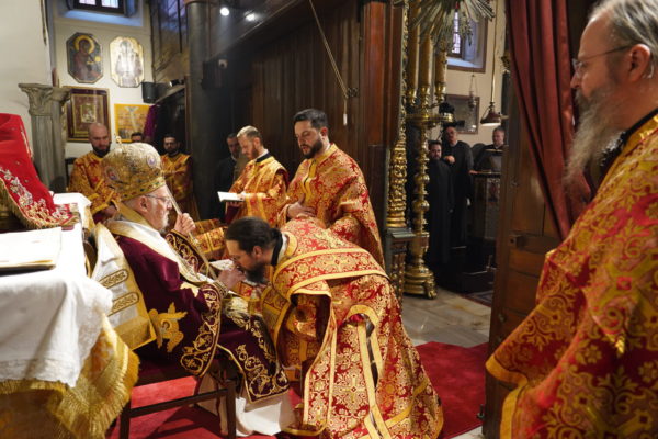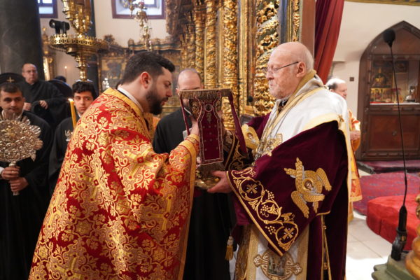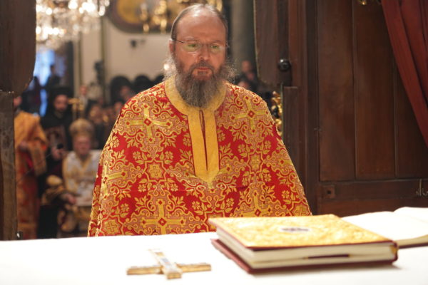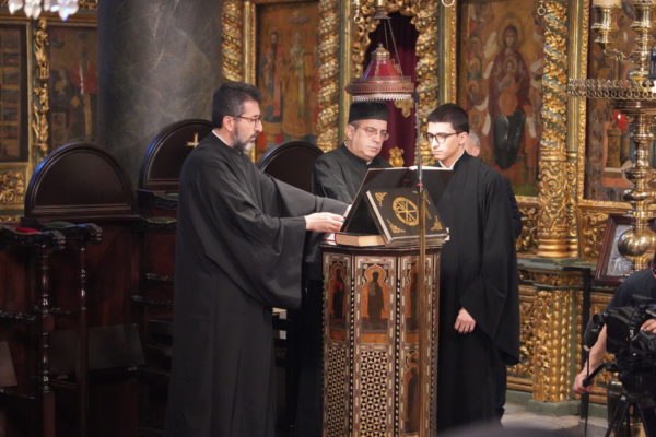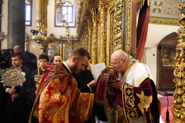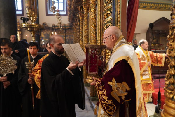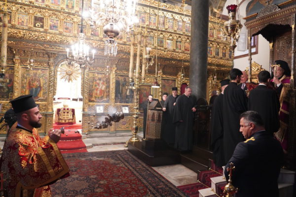 Ο Αρχιγραμματέας της Αγίας και Ιεράς Συνόδου, Πανοσιολ. Αρχιμανδρίτης κ. Βοσπόριος, ανέγνωσε την Πατριαρχική Απόδειξη για την εορτή των Χριστουγέννων.