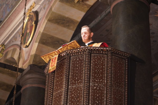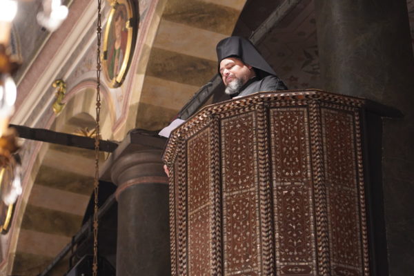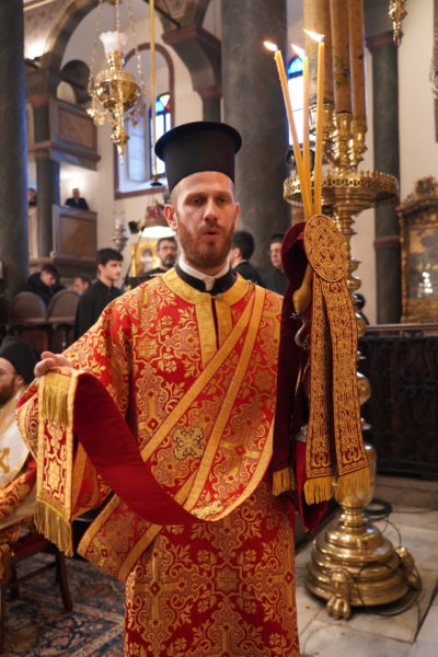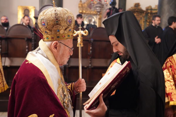 “Είσαι μέλος της Αδελφότητος της Ιεράς Πατριαρχικής και Σταυριοπηγιακής Μονής Τιμίου Προδρόμου Essex από το 2020. Εχειροτονήθης Διάκονος εις το Καθολικόν της υπό της ημών Μετριότητος τον Οκτώβριον του έτους 2022 και φέρεις το όνομα του ιδρυτού και κτίτορος της Μονής Οσίου Σωφρονίου του Αθωνίτου, αυτής της εμβληματικής πνευματικής, εκκλησιαστικής και θεολογικής μορφής του 20ου αιώνος, του θεολόγου της «παγκοσμιότητος», της «υποστατικής αρχής» και της «αγίας ελευθερίας», ο λόγος του οποίου ήταν πάντοτε ακραιφνώς Πατερικός και βαθέως υπαρξιακός και επίκαιρος, λόγος βεβαιωμένος διά προσωπικής εμπειρίας, λόγος παραδοσιακός, εν τη εννοία της αυθεντικής προσλήψεως, βιώσεως και αποκαλύψεως της Αληθείας της εκκλησιαστικής Παραδόσεως εν τω παρόντι.”, είπε ο Παναγιώτατος και σε άλλο σημείο της ομιλίας του σημείωσε: