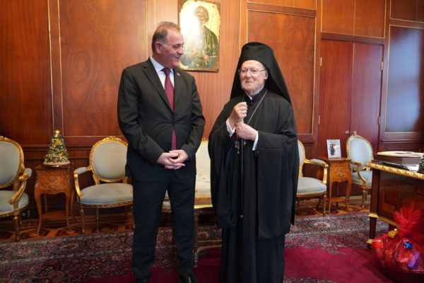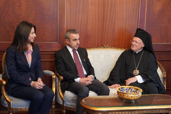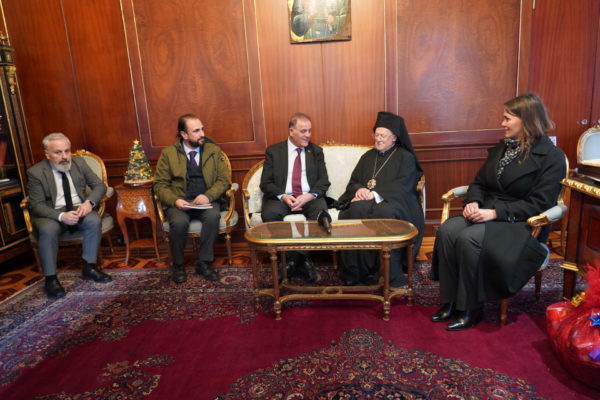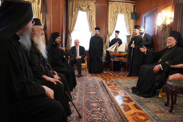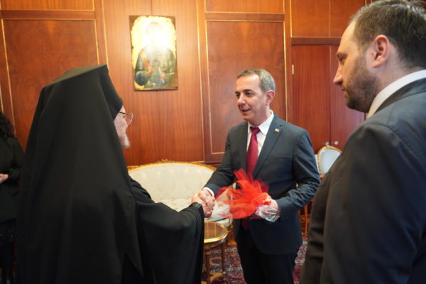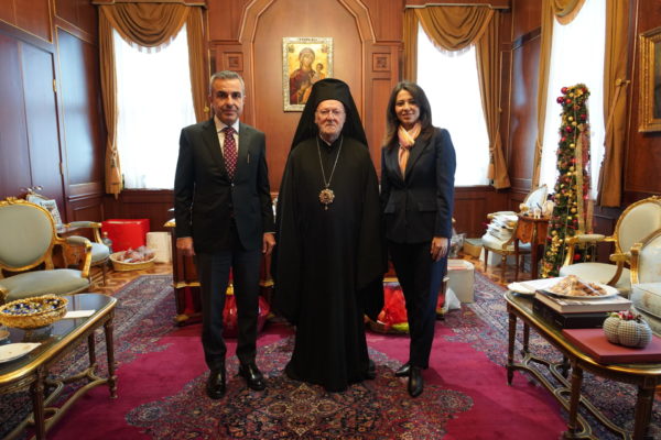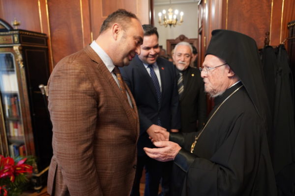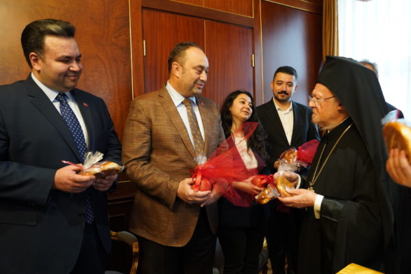 Λιγό νωρίτερα, ο Οικουμενικός Πατριάρχης δέχθηκε, στο επίσημο Πατριαρχικό Γραφείο, τις εγκάρδιες ευχές του Υπηρεσιακού Δημάρχου του Μητροπολιτικού Δήμου της Πόλεως κ. Nuri Aslan, του Επάρχου του Beyoğlu (Πέρα) κ. Atakan Atasoy, με την Ευγεν. σύζυγό του, αλλά και του Υπηρεσιακού Δημάρχου του δήμου Beyoğlu (Πέρα) κ. Sefer Karaahmetoğlu, καθώς, επίσης, και εκπροσώπων άλλων δήμων της Πόλεως και πολυμελών Αντιπροσωπειών πολλών Κομμάτων.