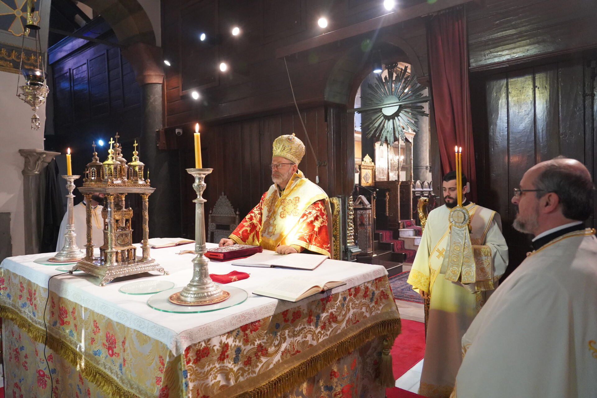 Με την ευκαιρία της εορτής του Αγίου Αποστόλου Στάχυος, πρώτου Επισκόπου Βυζαντίου, τελέστηκε την Παρασκευή, 31 Οκτωβρίου 2025, στον Πάνσεπτο Πατριαρχικό Ναό, Αρχιερατική Θεία Λειτουργία ιερουργούντος του Σεβασμιωτάτου Μητροπολίτου Σελευκείας κ. Θεοδώρου, ο οποίος την παραμονή χοροστάτησε στον Μέγα Εσπερινό της εορτής.