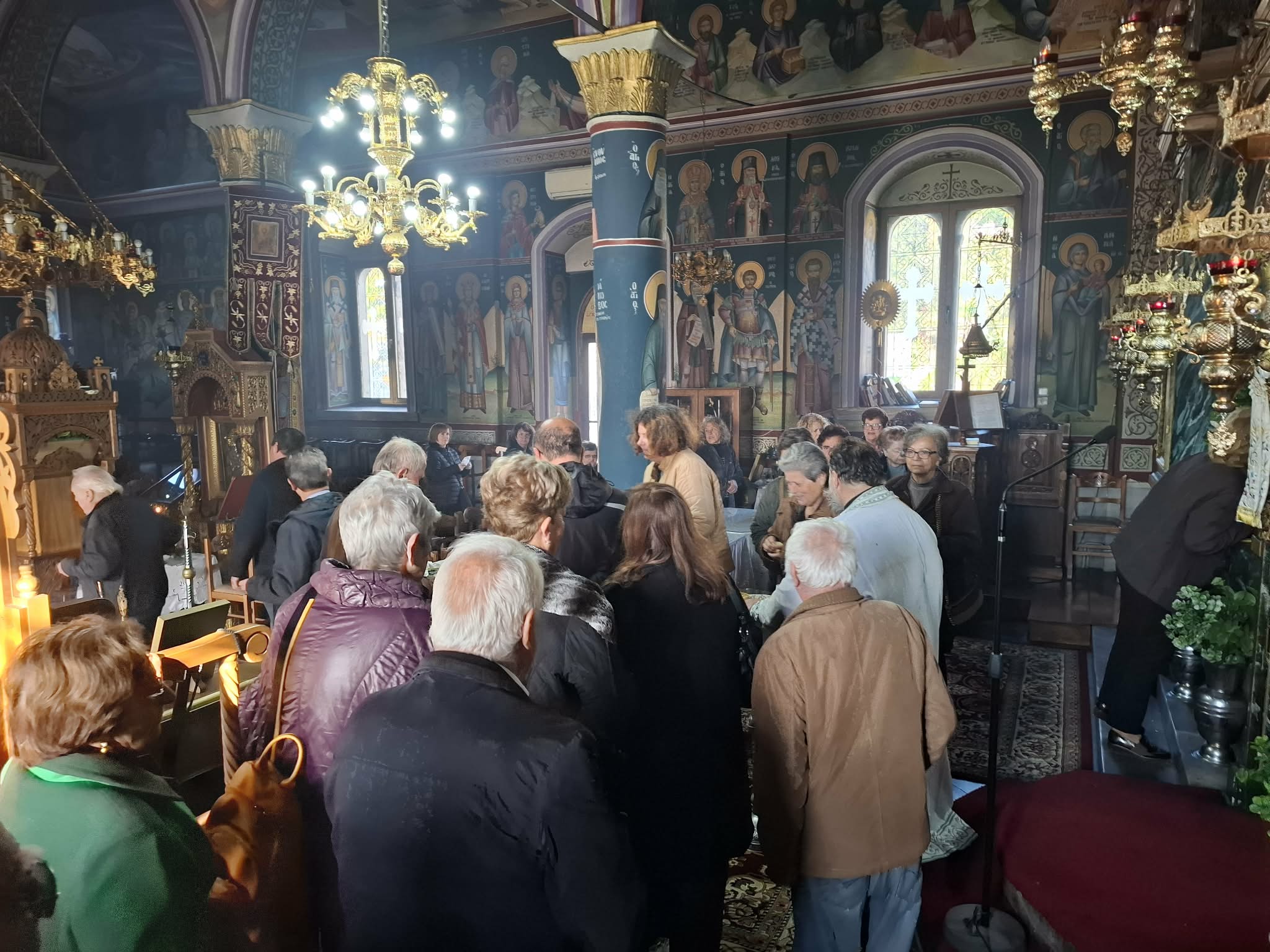 Κατά την διανομή του αντιδώρου οι πιστοί ευχήθηκαν στον π. Δημήτριο για την επέτειο της χειροτονίας του.