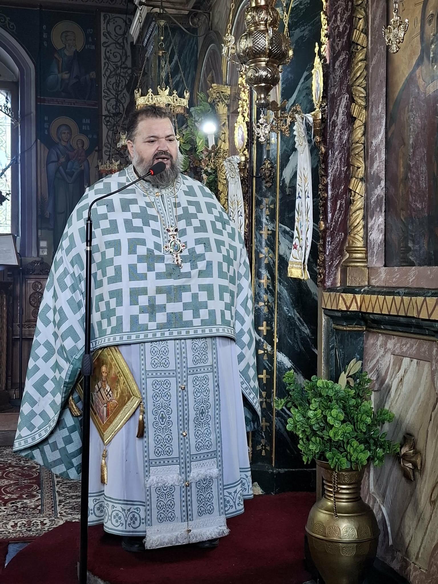 Η Θεία Λειτουργία τελέσθηκε από τον Πρωτοπρεσβύτερο Δημήτριο Αργύρη, εφημέριο του Ιερού Ναού, ο οποίος συνάμα με την σημερινή εορτή εόρτασε και την 29η Επέτειο Χειροτονίας του εις Πρεσβύτερο, εκ των τιμίων και σεπτών χειρών του μακαριστού Μητροπολίτου Χαλκίδος κυρού Χρυσοστόμου Α’ (Βέργη).