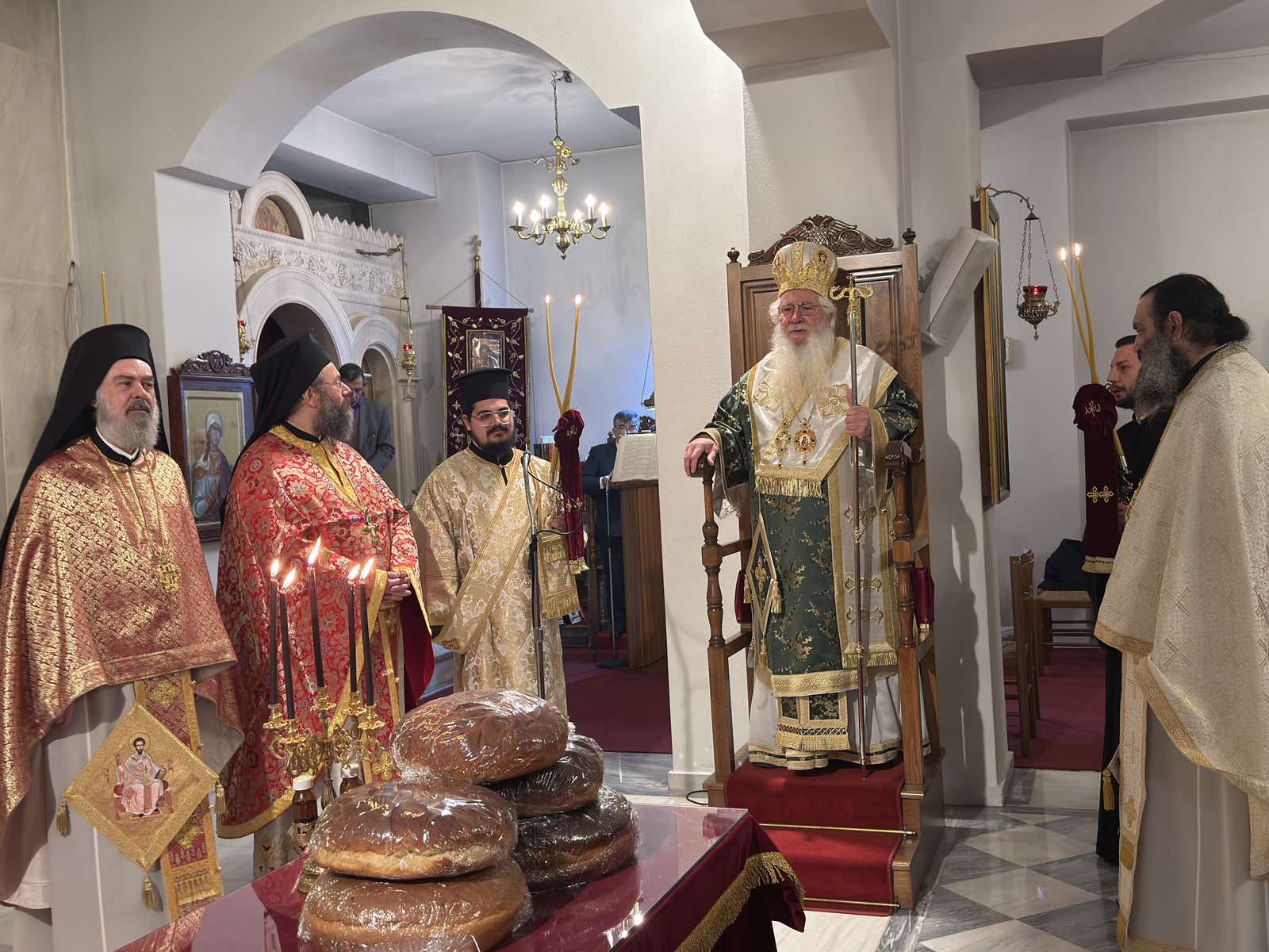 Το πρωί της κυριωνύμου ημέρας (Κυριακή 22 Φεβρουαρίου) ετελέσθη ο όρθρος και πανηγυρική Αρχιερατική Θεία Λειτουργία ιερουργούντος του Σεπτού Ποιμενάρχου Μητροπολίτη Θηβών, Λεβαδείας και Αυλίδος κ. Γεωργίου. Τον θείο λόγο εκήρυξε ο Ιεροκήρυξ της Ιεράς Μητροπόλεως π. Ιερώνυμος Κυριαζής, ο οποίος συνδύασε στο κήρυγμά του την Κυριακή της Τυρινής και το πρόσωπο του Αγίου Ρηγίνου. Δεν είναι τυχαίο που η μνήμη ενός ομολογητού της πίστεως συναντά την ημέρα που η Εκκλησία μας μιλά για τη συγχώρεση και τη νηστεία. Διότι η αλήθεια χωρίς αγάπη γίνεται σκληρότητα, και η άσκηση χωρίς αγάπη γίνεται κενό σχήμα.