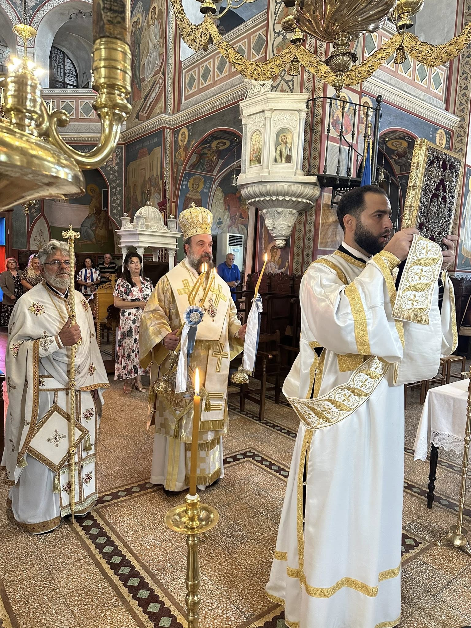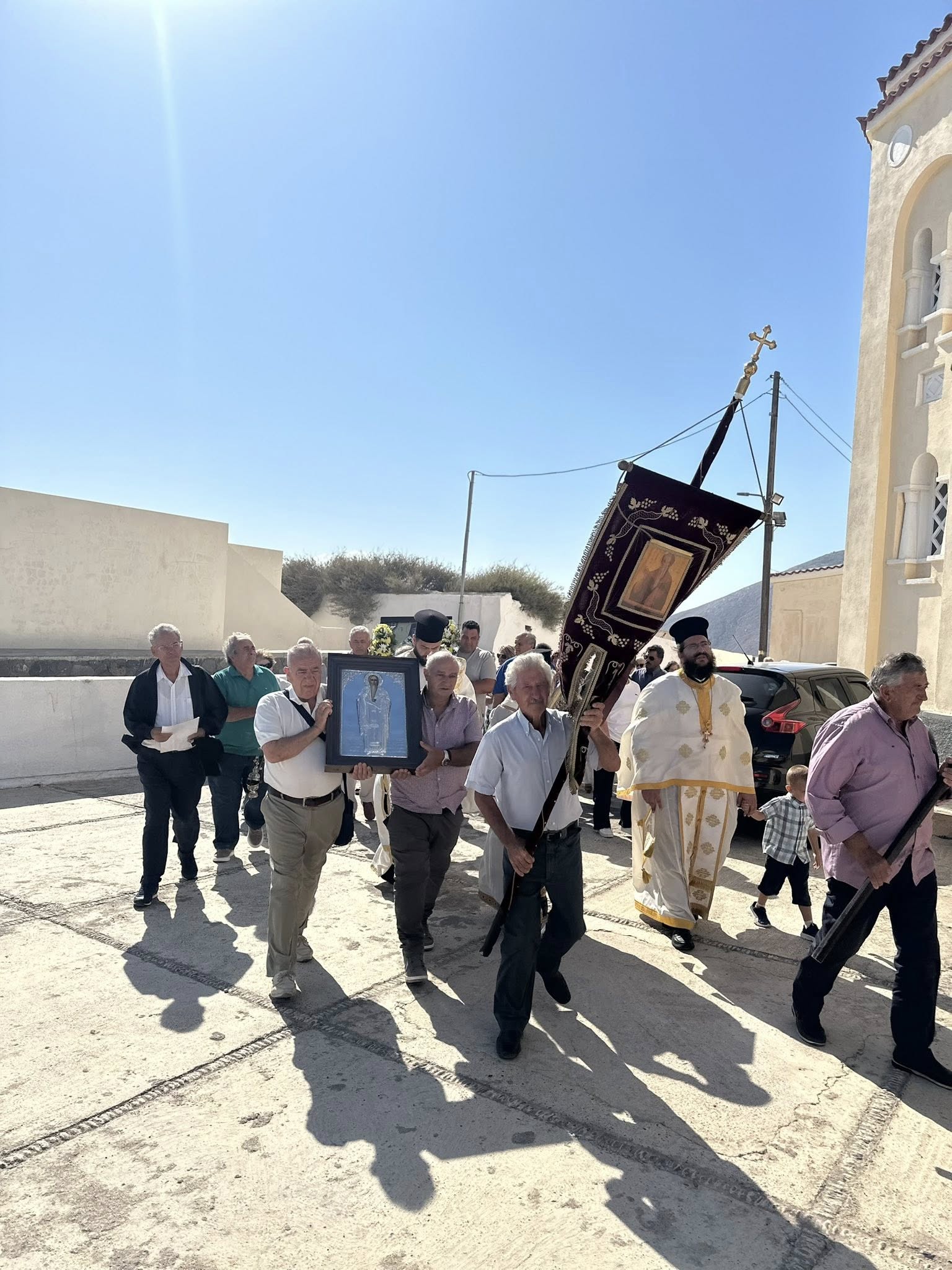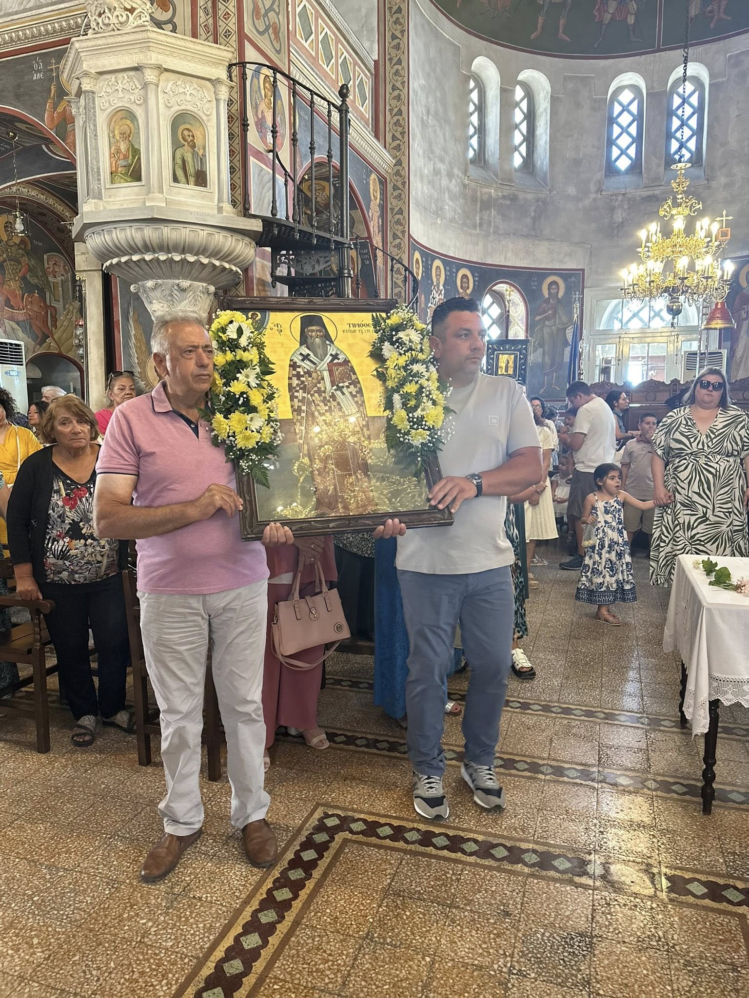 Προ της απολύσεως πραγματοποιήθηκε η λιτάνευση της ιεράς εικόνος του Αγίου Τιμοθέου και ευλογήθηκε η παραδοσιακή πανήγυρις.
