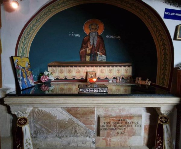 Περί του Αγίου Θεοδοσίου παραδίδει η Εκκλησία, αντλούσα και εξ άλλων πηγών αλλά κυρίως από των συγγραμμάτων του Κυρίλλου Σκυθοπολίτου, «Βίοι των Παλαιστινίων Αγίων», ων εις ο Άγιος Θεοδόσιος.