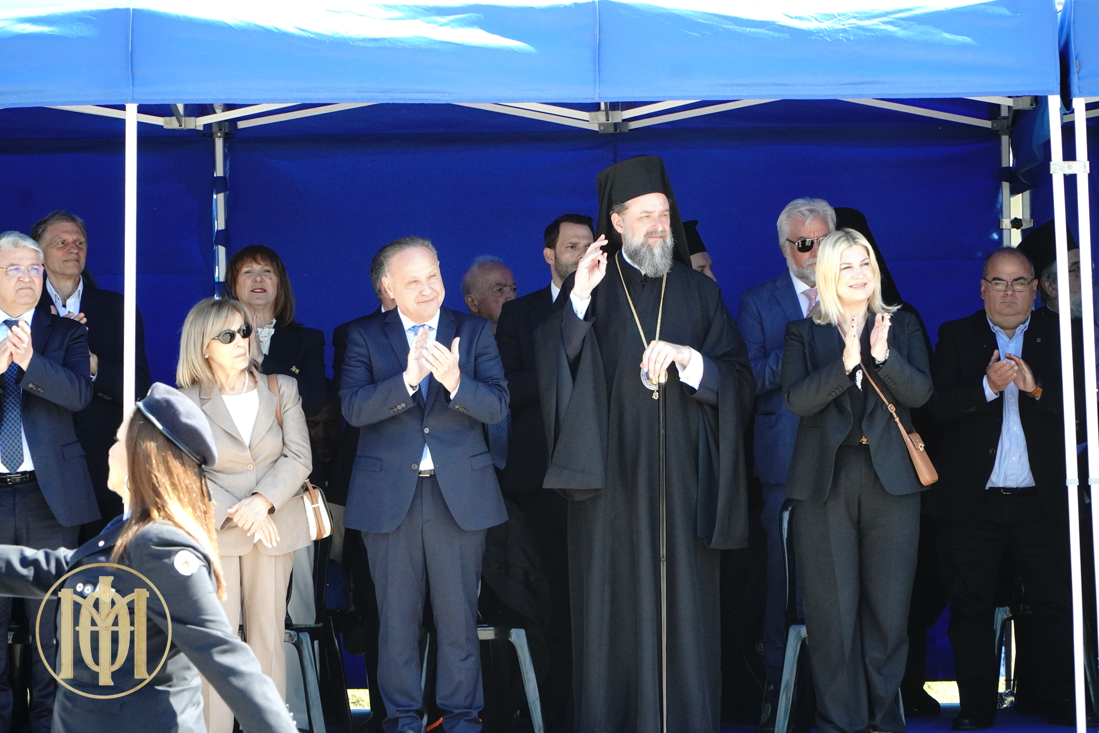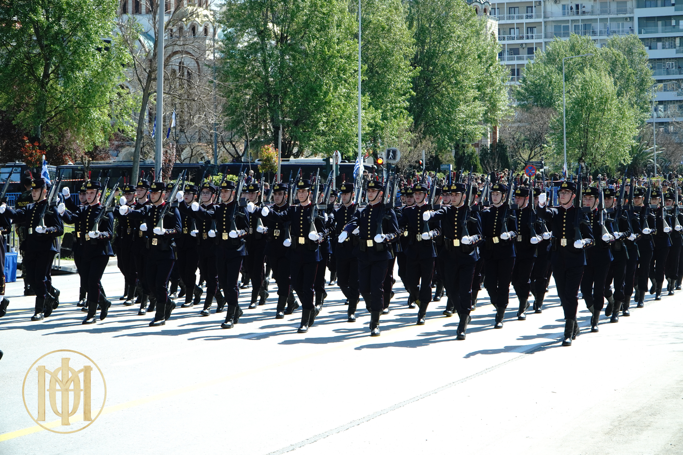 Ακολούθως, ο Ποιμενάρχης μας και οι αρχές του τόπου μετέβησαν στην παραλιακή λεωφόρο, όπου παρακολούθησαν την παρέλαση μαθητών των Σχολείων της πόλης μας, μελών Πολιτιστικών Συλλόγων και τμημάτων μαθητών της Στρατιωτικής Σχολής Αξιωματικών Σωμάτων (Σ.Σ.Α.Σ.).