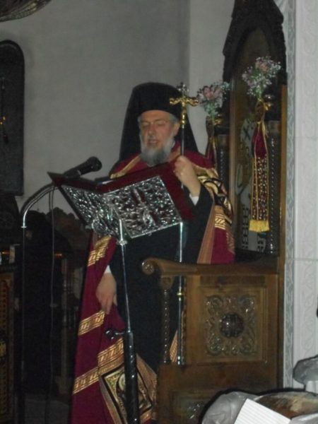 Εν συνεχεία, και όλως ιδιαιτέρως, εξέφρασε τις ευχαριστίες του προς την Καθηγουμένη της Ιεράς Μονής Γερόντισσα Παρθενία και την περί αυτήν Μοναστική Αδελφότητα, για την αγγελική απόδοση των ύμνων, την αβραμιαία φιλοξενία και τον κόπο, στον οποίο υπεβλήθησαν, για την προετοιμασία της Πανηγύρεως του Οσίου, καθώς και προς τους συλλειτουργούς Ιερείς και όλους τους ευσεβείς χριστιανούς για τη συμμετοχή τους στην εορτή.