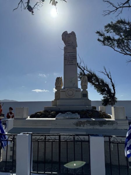 Αμέσως μετά, στον χώρο του Ηρώου στην Δημοτική Πλατεία «Σαρπάκη», τελέσθηκε επιμνημόσυνη δέηση για τους πεσόντες του έπους του ’40, ενώ ακολούθησε κατάθεση στεφάνων από εκπροσώπους των αρχών, των σχολείων και φορέων του νησιού.