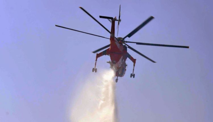 Στην επιχείρηση κατάσβεσης της πυρκαγιάς, σήμερα συνέδραμαν και εναέρια μέσα.