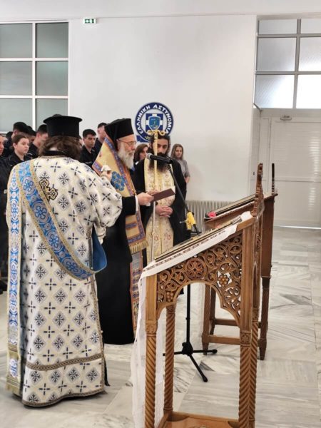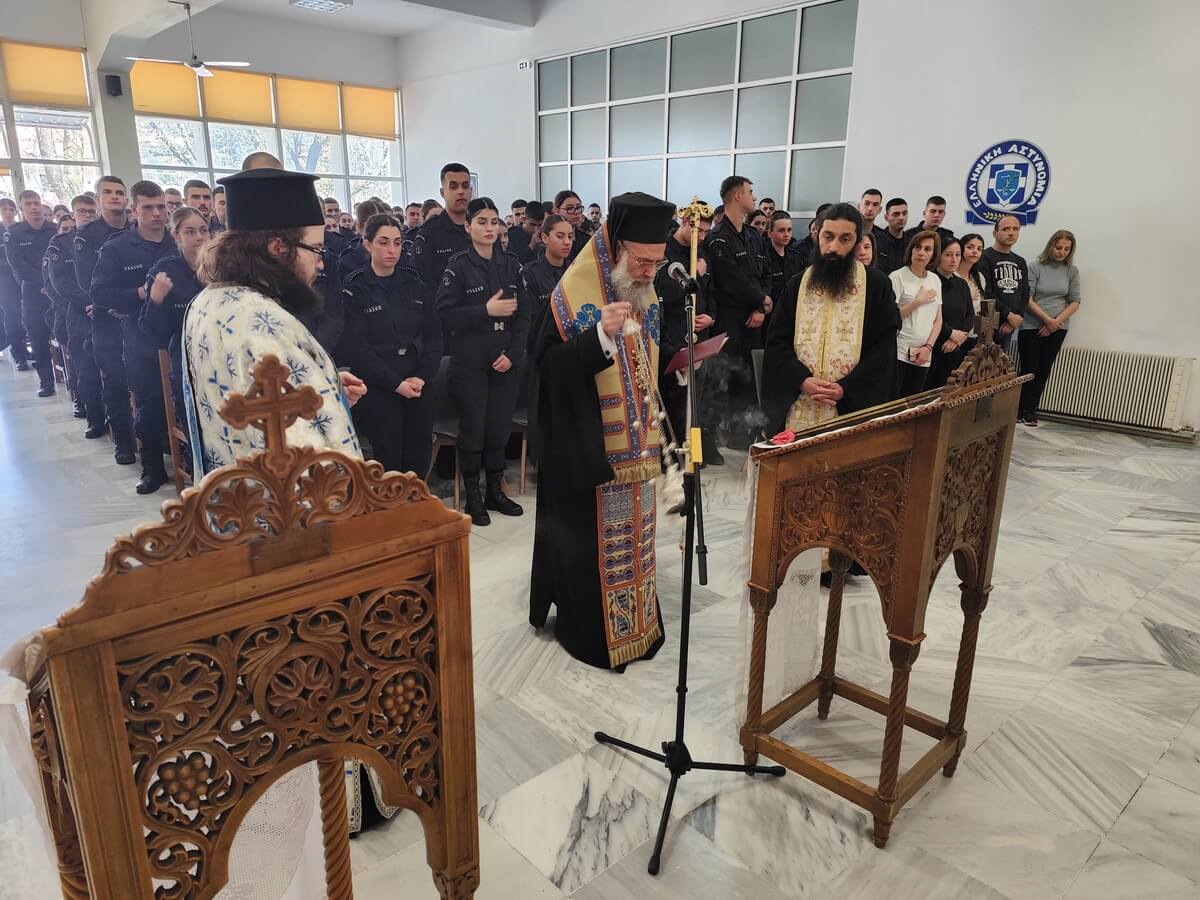 Απευθυνόμενος ιδιαιτέρως στους δοκίμους αστυφύλακες, ο Σεβασμιώτατος αναφέρθηκε στη σημασία της υπευθυνότητας, της υπακοής και της μεταξύ τους ενότητας μέσα στο περιβάλλον της Σχολής, τονίζοντας ότι η κοινή ζωή απαιτεί σεβασμό, αλληλοκατανόηση και αλληλοπροστασία. Υπογράμμισε ακόμη ότι στο μέλλον, όταν θα υπηρετήσουν στην κοινωνία, η παρουσία τους και μόνο θα πρέπει να εμπνέει στους πολίτες αίσθημα ειρήνης και ασφάλειας.