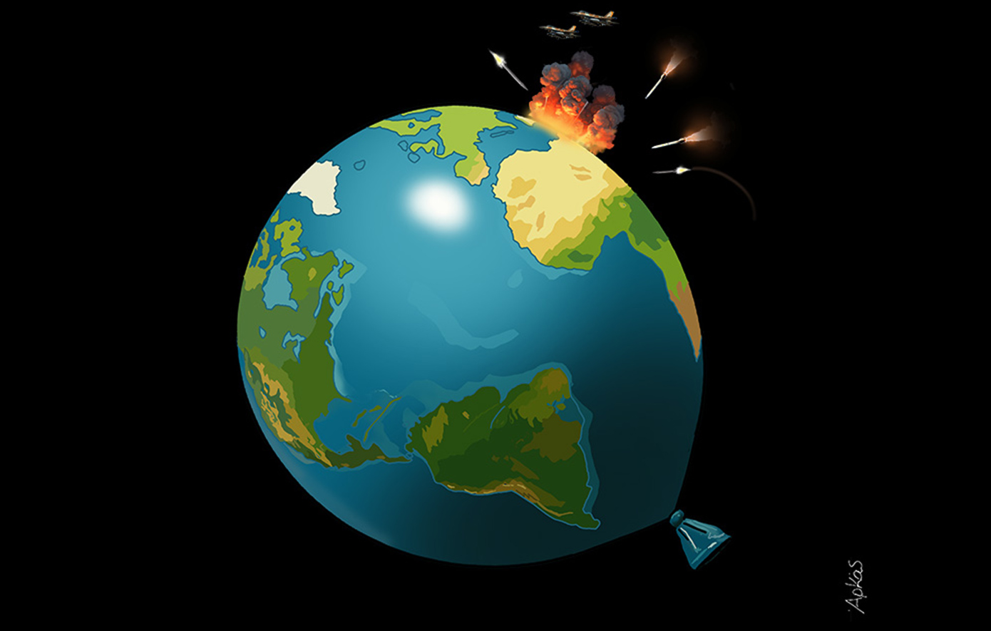 Η Γη είναι ένα μπαλόνι έτοιμο να σκάσει – Το σκίτσο του Αρκά για τις δραματικές εξελίξεις στη Μέση Ανατολή