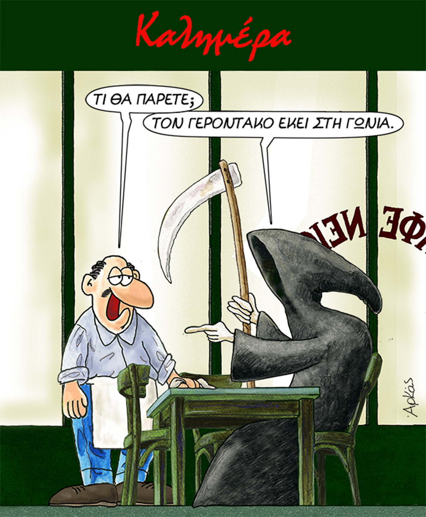 Η «καλημέρα» του Αρκά στο καφενείο με πελάτη τον… Χάρο
