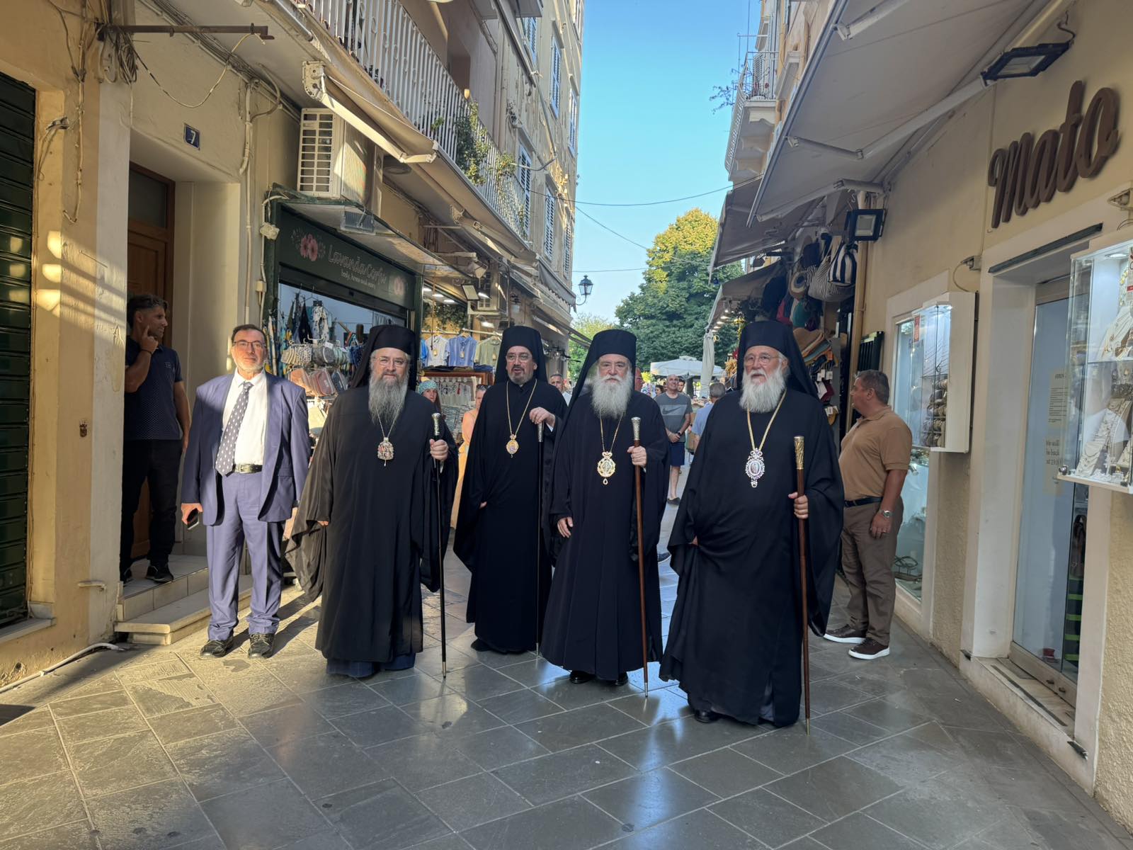 Στον Εσπερινό χοροστάτησε και μίλησε ο Σεβασμιώτατος Μητροπολίτης Ζακύνθου κ. Διονύσιος, ενώ συγχοροστάτησαν ο Σεβασμιώτατος Μητροπολίτης Λευκάδος και Ιθάκης κ. Θεόφιλος, ο Θεοφιλέστατος Επίσκοπος Κοτυαίου κ. Διονύσιος και ο οικείος Ποιμενάρχης Σεβασμιώτατος Μητροπολίτης Κερκύρας, Παξών και Διαποντίων Νήσων κ. Νεκτάριος.