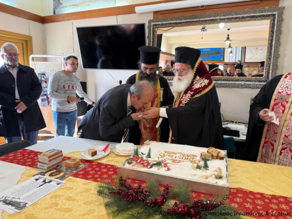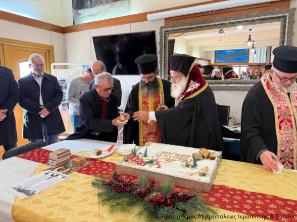 Στην εκδήλωση της κοπής της Βασιλόπιτας έλαβαν μέρος ο Πανοσιολ. Πρωτοσύγκελλος της Ι. Μητροπόλεως Αρχιμ. Αμβρόσιος Σκαρβέλης, ο Πανοσιολ. Αρχιμ. Παΐσιος Δερμιτζάκης, Ηγούμενος της Ιεράς Μονής Παναγίας Φανερωμένης και Εφημέριος της Ενορίας Παχείας Άμμου, και ο Διάκονος Θεμιστοκλής Μπεϊνάς.