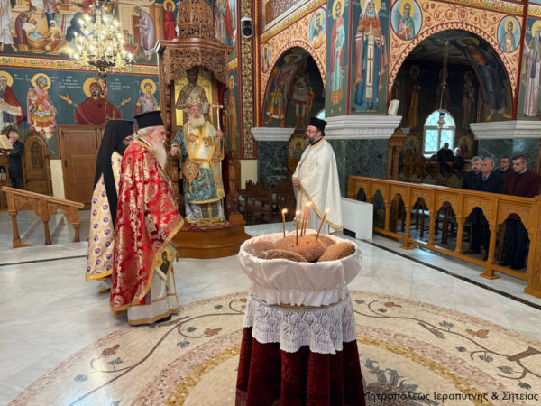 Την Κυριακή μετά την Χριστού Γέννησιν, 28 Δεκεμβρίου 2025, μνήμη του Αγίου Ιωσήφ του Μνήστορος, του προφητάνακτος Δαβίδ και του Αγίου Ιακώβου του Αδελφοθέου, ο Σεβασμιώτατος Μητροπολίτης Ιεραπύτνης και Σητείας κ. Κύριλλος χοροστάτησε κατά την ακολουθία του Όρθρου, ευλόγησε τους προσφερόμενους άρτους και στη συνεχεία ιερούργησε και τέλεσε το τεσσαρακονθήμερο μνημόσυνο υπέρ αναπαύσεως της ψυχής της μακαριστής Δασκάλας Ελευθερίας Βαρδάκη στον Ιερό Ενοριακό Ναό Ευαγγελισμού Θεοτόκου Σητείας.