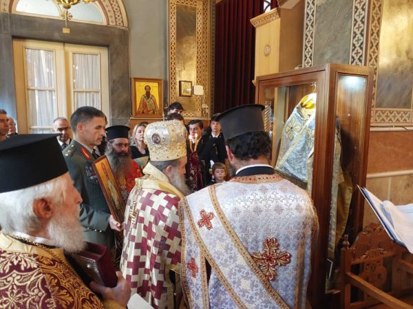 Μετά την Θεία Λειτουργία ο Σεβασμιώτατος εδεξιώθη τις αρχές, τις κυρίες της Ενώσεως και τους Σπουδαστές στο Γραφείο του.