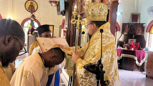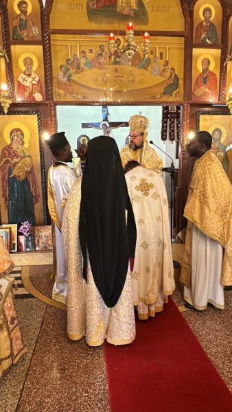 Κατά τη διάρκεια της Θείας Λειτουργίας, και κατόπιν σεπτής ευλογίας του Μακαριωτάτου Πάπα και Πατριάρχου Αλεξανδρείας και πάσης Αφρικής κ.κ. Θεοδώρου, ο Σεβασμιώτατος προέβη στη χειροθεσία στο οφίκιο του «Αρχιμανδρίτου» του Ιερομονάχου π. Ιακώβου Daglas Larbi, προς τον οποίο απηύθυνε πατρικές ευχές για καλή και καρποφόρο διακονία προς δόξαν Θεού και οικοδομή της τοπικής Εκκλησίας.