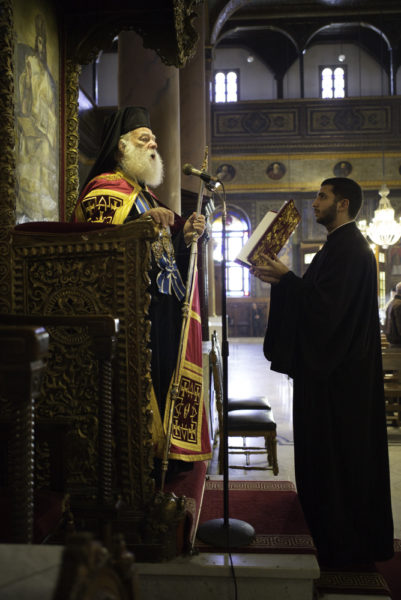 Στην Ακολουθία του Όρθρου χοροστάτησε ο Μακαριώτατος Πάπας και Πατριάρχης Αλεξανδρείας και πάσης Αφρικής κ.κ. Θεόδωρος Β΄ ο οποίος στη συνέχεια προεξήρχε της Θείας Λειτουργίας, πλαισιούμενος από τους Σεβασμιωτάτους Μητροπολίτες Ερμουπόλεως κ. Νικολάο, Μέμφιδος κ. Νικόδημο και Νουβίας κ. Σάββα, καθώς και τους Θεοφιλεστάτους Επισκόπους Κιγκάλι και Ρουάντας κ. Ιωακείμ και Ιππώνος κ. Στέφανο.