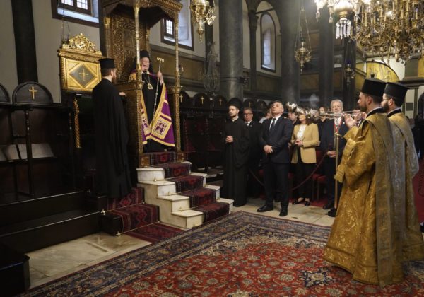 Μετά την Απόλυση, ο Παναγιώτατος καλωσόρισε όλους τους προσκυνητές και ιδιαιτέρως τους σχολικούς ομίλους υπογραμμίζοντας, μεταξύ άλλων, τη σημασία των επισκέψεων των μικρών μαθητών στην Πόλη και στο Οικουμενικό Πατριαρχείο.