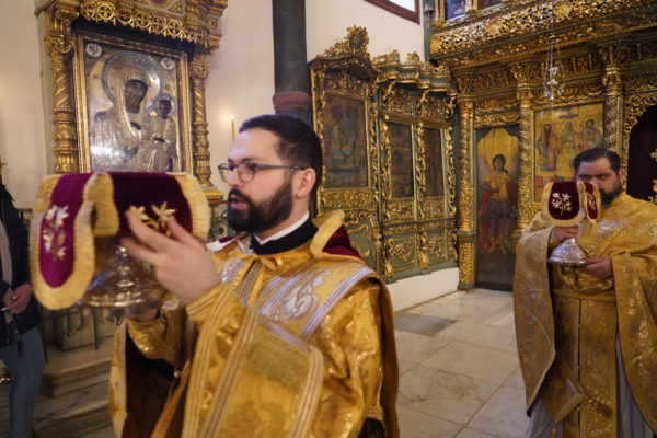 Τη Θεία Λειτουργία τέλεσε, κατά την τάξη, ο Αρχιγραμματεύς της Αγίας και Ιεράς Συνόδου, Πανοσιολ. Αρχιμανδρίτης κ. Βοσπόριος, με τον Υπογραμματέα, Πανοσιολ. Διάκονο κ. Οικουμένιο. Τον θείο λόγο κήρυξε ο Πανοσιολ. Μέγας Αρχιδιάκονος κ. Αλέξανδρος.