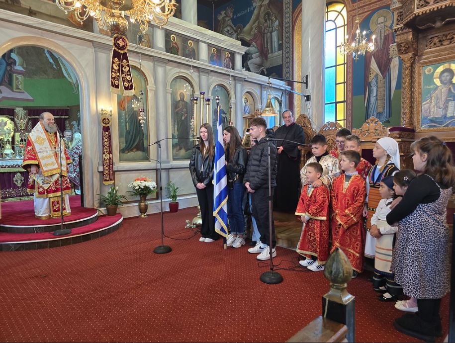 Στην ομιλία του ο Σεβασμιώτατος συνέδεσε την εμπειρία και ομολογία των Μυροφόρων μπροστά από το γεγονός της Αναστάσεως του Κυρίου, με το μαρτύριο των έξι Παρθενομαρτύρων βλαστών του Γεροπλατάνου το 1854, όπου, με επικεφαλής τον Χασάν Αγά, οι Τούρκοι κατέπνιξαν την Επανάσταση των Χαλκιδικιωτών, υπό τον Τσάμη Καρατάσο και κατέσφαξαν και στον Πολύγυρο και στα Ζερβοχώρια μεγάλο αριθμό Ρωμηών.