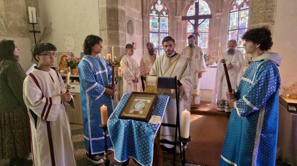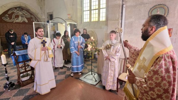 Στο τέλος της Θείας Λειτουργίας ο Σεβασμιώτατος χειροθέτησε τον Πρεσβύτερο Sergii Pavelko εις Σταυροφόρον Οικονόμον, ευχαριστώντας τον για τη λειτουργική και ποιμαντική προσφορά του στην περιοχή, όπου διακονεί τους ουκρανόφωνους πιστούς που κατέφυγαν εκεί εξ αιτίας του πολέμου. Εξέφρασε, παράλληλα, ευχές για την ειρήνη στην Ουκρανία, ενώ τελέσθηκε και Τρισάγιο υπέρ αναπαύσεως των κεκοιμημένων συγγενών των παρόντων, αλλά και υπέρ πάντων των κεκοιμημένων.