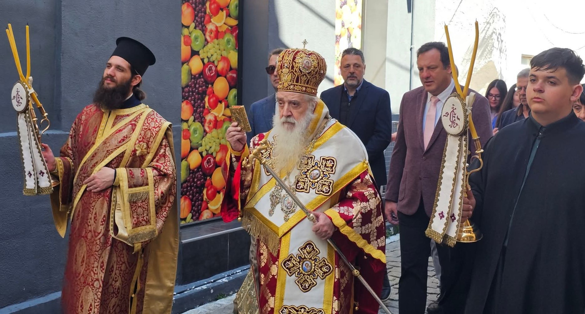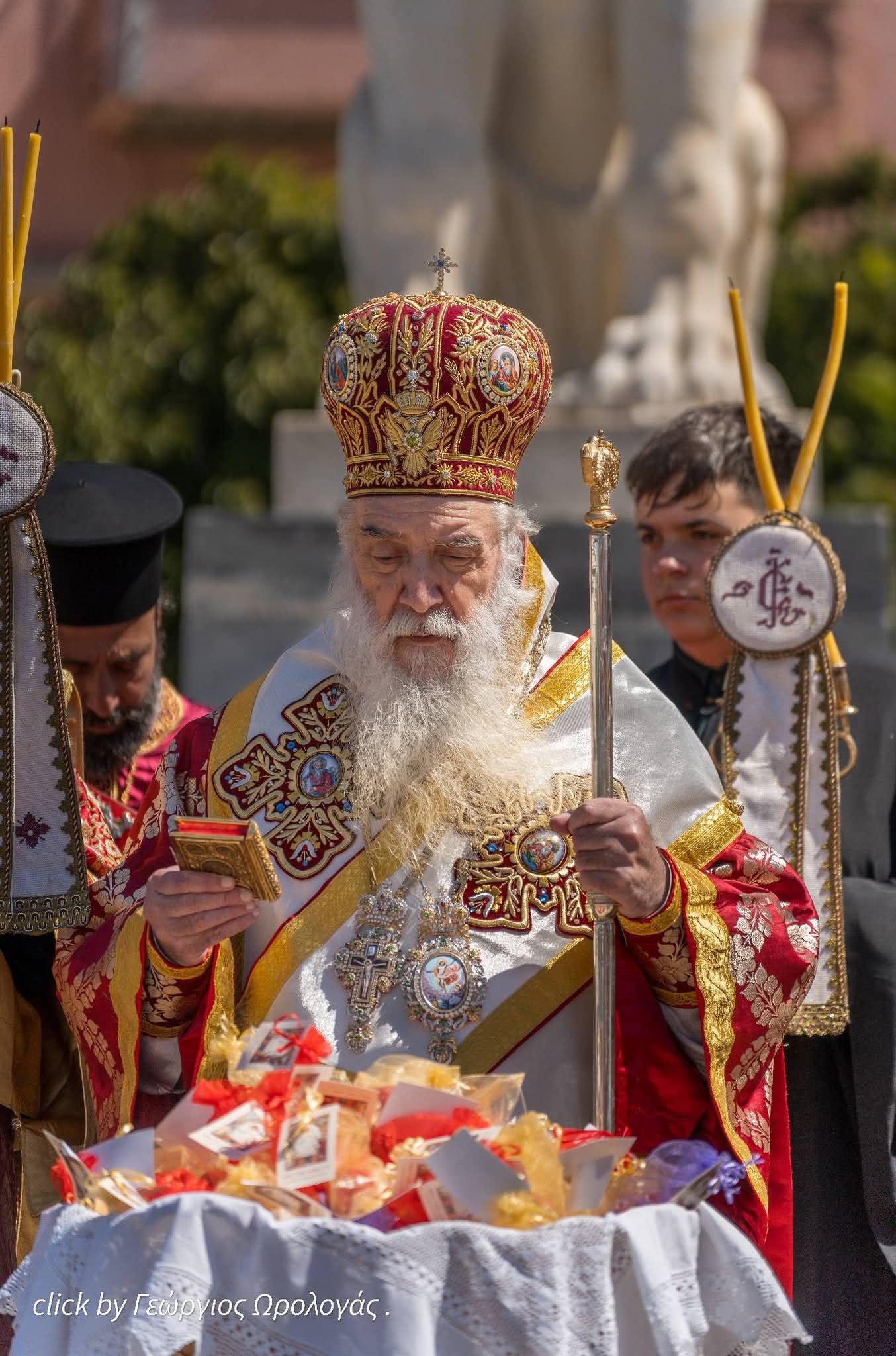 Ακολούθως πραγματοποιήθηκε η λιτάνευση των ιερών εικόνων και των λαβάρων της Αναστάσεως ανά την πόλη της Σάμου, προεξάρχοντος του σεπτού Ποιμενάρχου, ο οποίος, από της εξέδρας, στην κεντρική πλατεία της Σάμου, απηύθυνε αναστάσιμο λόγο και πατρικές ευχές προς τους παρισταμένους πιστούς. Προσέφερε δε σε όλους αναστάσιμα κόκκινα αυγά.