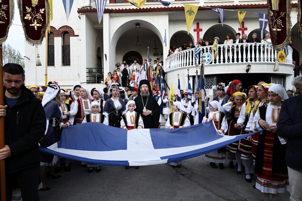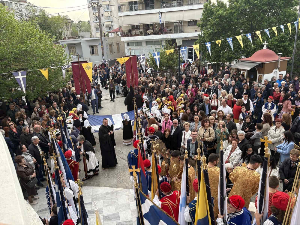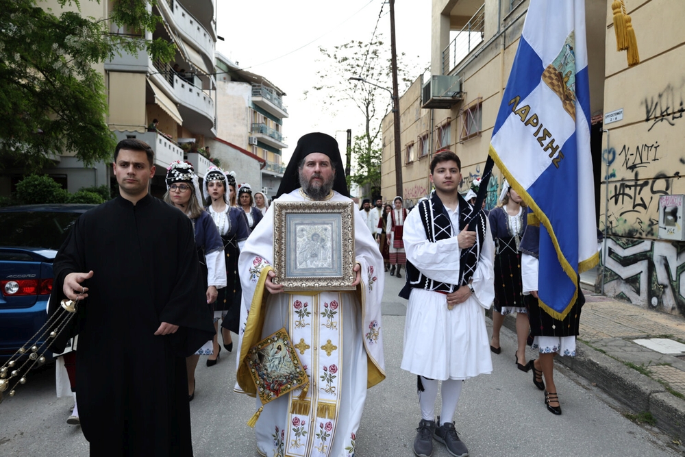 Με επικεφαλής τις αρχές της πόλης και της περιοχής μας, πλήθη πιστών προσήλθαν για να λιτανεύσουν την αγαπημένη Παναγία των Λαρισαίων, προεξάρχοντος του Σεβασμιωτάτου Μητροπολίτου Λαρίσης και Τυρνάβου κ. Ιερωνύμου. Μετά την τέλεση Ιεράς Παρακλήσεως και του Αναστάσιμου Εσπερινού, οι δρόμοι πλησίον του Ναού πλημμύρισαν από πιστούς, οι οποίοι συμμετείχαν με ευλάβεια στην Ιερά Λιτανεία της θαυματουργού Εφεστίου Εικόνος της Παναγίας. Νέοι της ενορίας, κρατώντας τα λάβαρα, αλλά και τις ιδιαίτερες σημαίες από κάθε τόπο της πατρίδας μας, έδωσαν μία ξεχωριστή εικόνα και μαρτυρία στη γειτονιά της πόλεως.