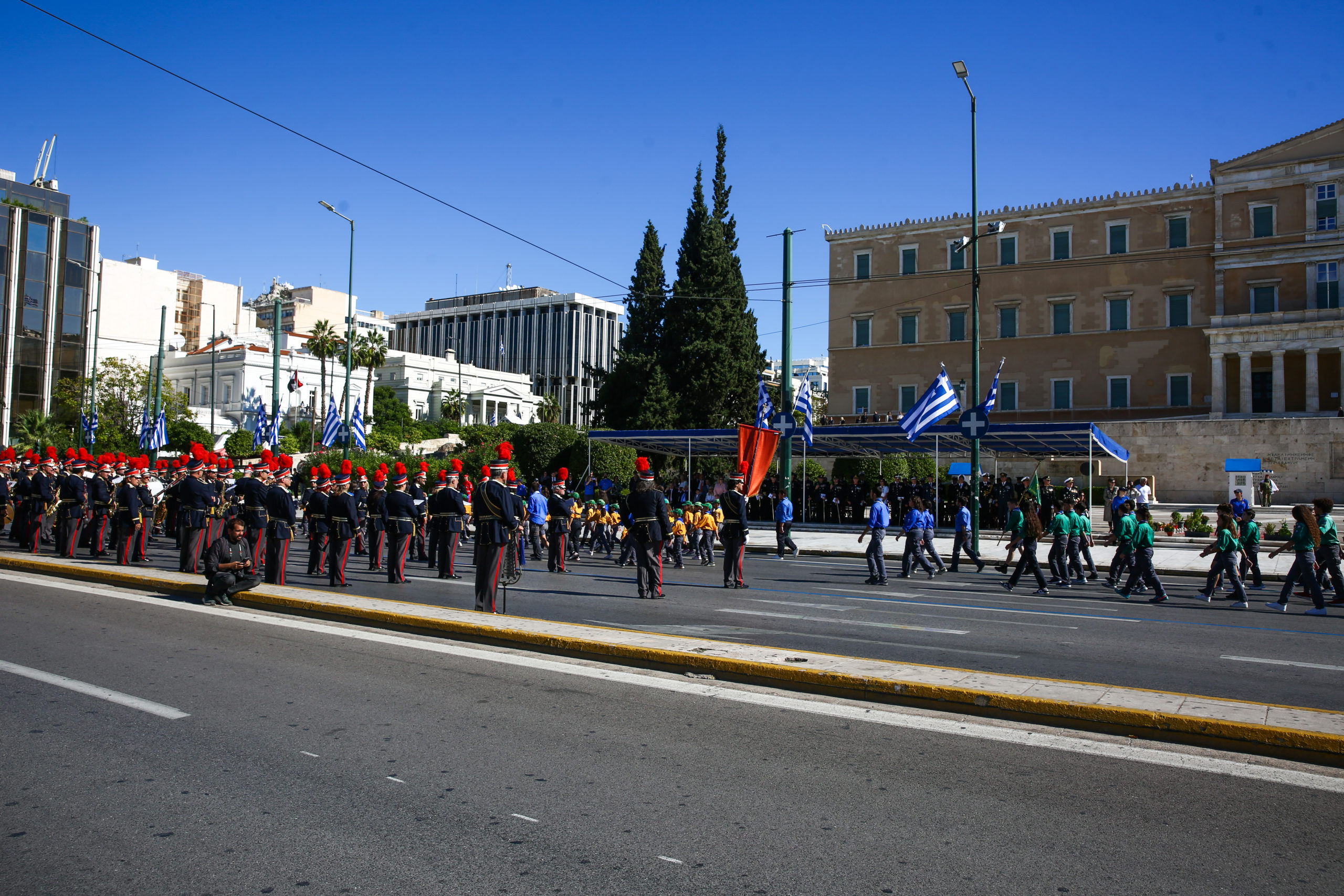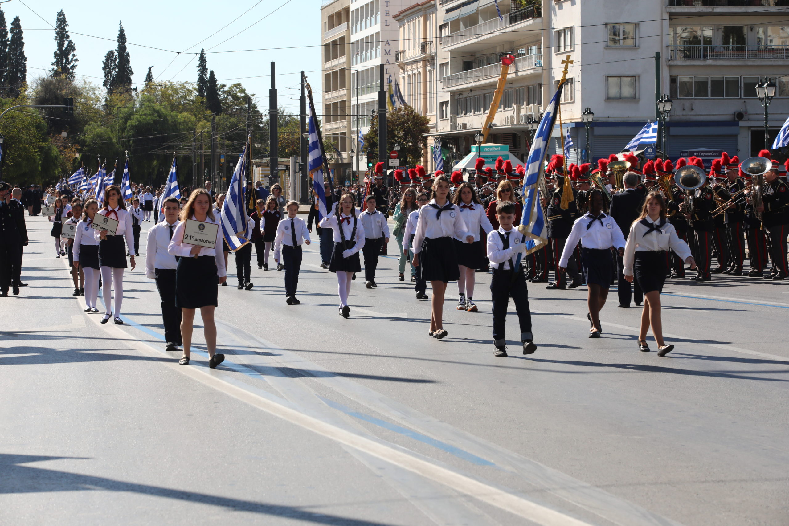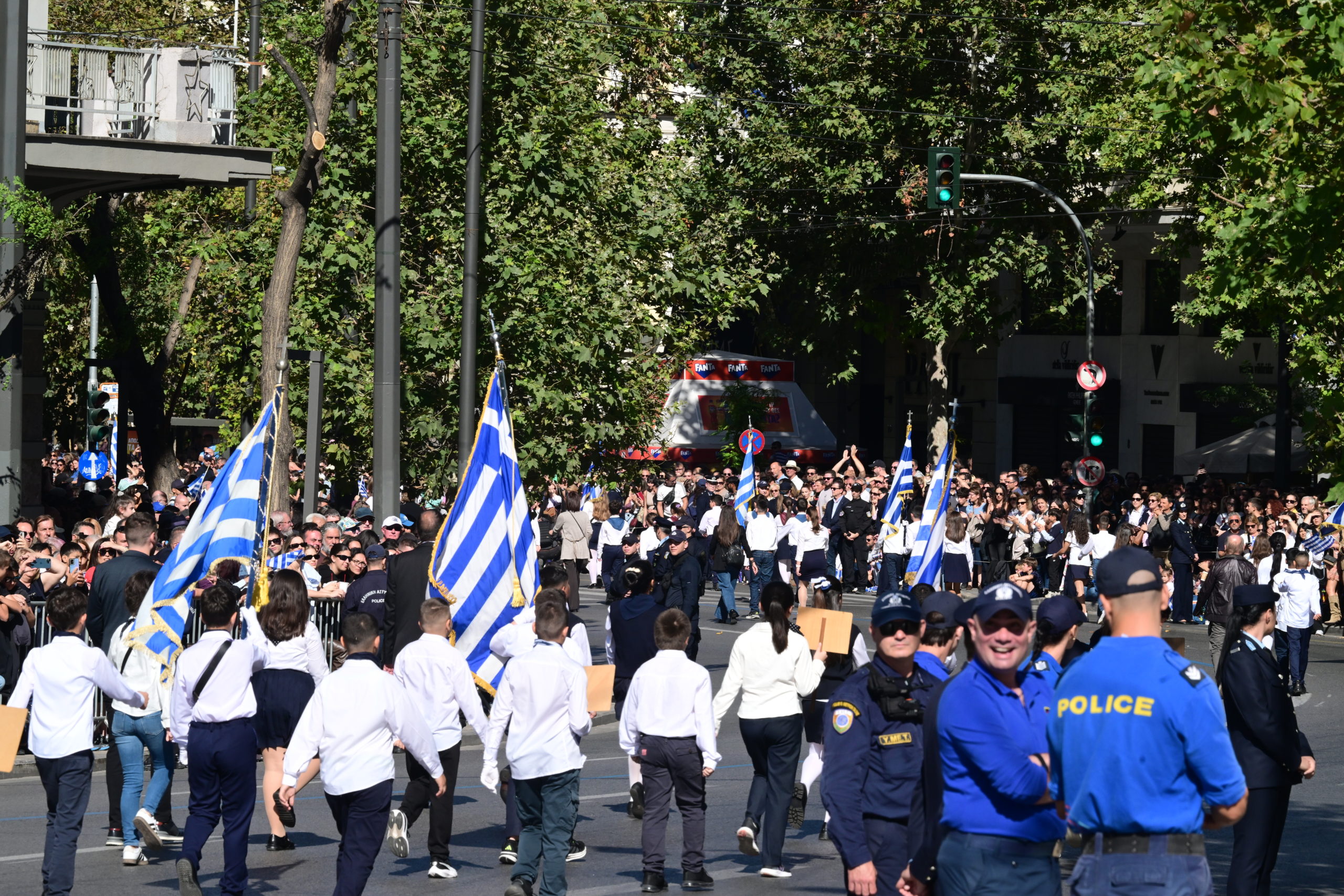 Ολοκληρώθηκε η μαθητική παρέλαση στο κέντρο της Αθήνας, για τον εορτασμό της Εθνικής Επετείου της 28ης Οκτωβρίου.