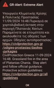 Η πυρκαγιά βρίσκεται σε μικρή απόσταση από τον οικισμό του Πλατανιά, ενώ συναγερμός έχει σημάνει σε τρεις μεγάλες ξενοδοχειακές μονάδες που βρίσκονται στην περιοχή.