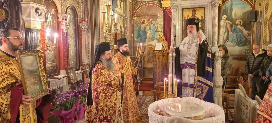 Την κυριώνυμο ημέρα, Δευτέρα 9 Μαρτίου 2026, τελέσθηκε ο Πανηγυρικός Όρθρος, η Ακολουθία των Ωρών και η Προηγιασμένη Θεία Λειτουργία υπό του Γενικού Αρχιερατικού Επιτρόπου της Μητροπόλεως Αιδεσιμολογιωτάτου Πρωτοπρεσβυτέρου π. Χρίστου Κυριακόπουλου (ο οποίος συμπληρώνει 51 έτη ιερωσύνης) και του Ιερολογιωτάτου Διακόνου π. Εφραίμ Αθανασόπουλου.