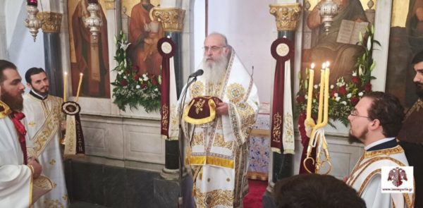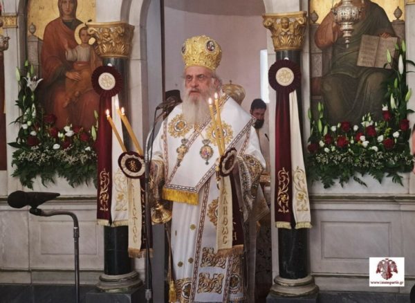 Στους ευλαβείς χριστιανούς, που είχαν κατακλύσει τον Ναό και τον προαύλιο χώρο, απηύθυνε τον μελίρρυτο λόγο του ο Θεοφιλέστατος Επίσκοπος Λακεδαιμονίας, ο οποίος επισήμανε, μεταξύ άλλων, ότι η Υπεραγία Θεοτόκος, που είναι μία ζωντανή μητρική παρουσία στη ζωή μας, αποτελεί την κλίμακα που ενώνει Ουρανό και Γη και τον οδηγό μας στην πορεία της ανόδου μας, καθώς αυτή πρώτη βάδισε τον δρόμο της υπακοής, της ταπείνωσης και της καθαρότητας. Η Παναγία μας, υπογράμμισε καταλήγοντας ο Θεοφιλέστατος, μας καλεί να ανεβούμε αυτή την κλίμακα των αρετών, ώστε να ξεφύγουμε από την αμαρτία, την αλαζονεία και την σκληρότητα.