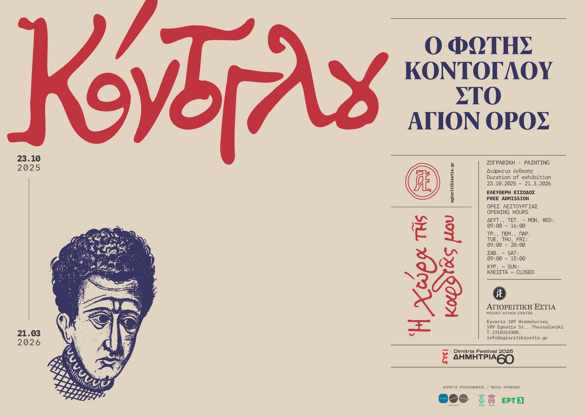 Η νέα έκθεση της Αγιορειτικής Εστίας επιχειρεί να φωτίσει, μέσα από τα έργα και τις αφηγήσεις του Φώτη Κόντογλου, τη σχέση του με την τέχνη και τη ζωή στο Άγιον Όρος.