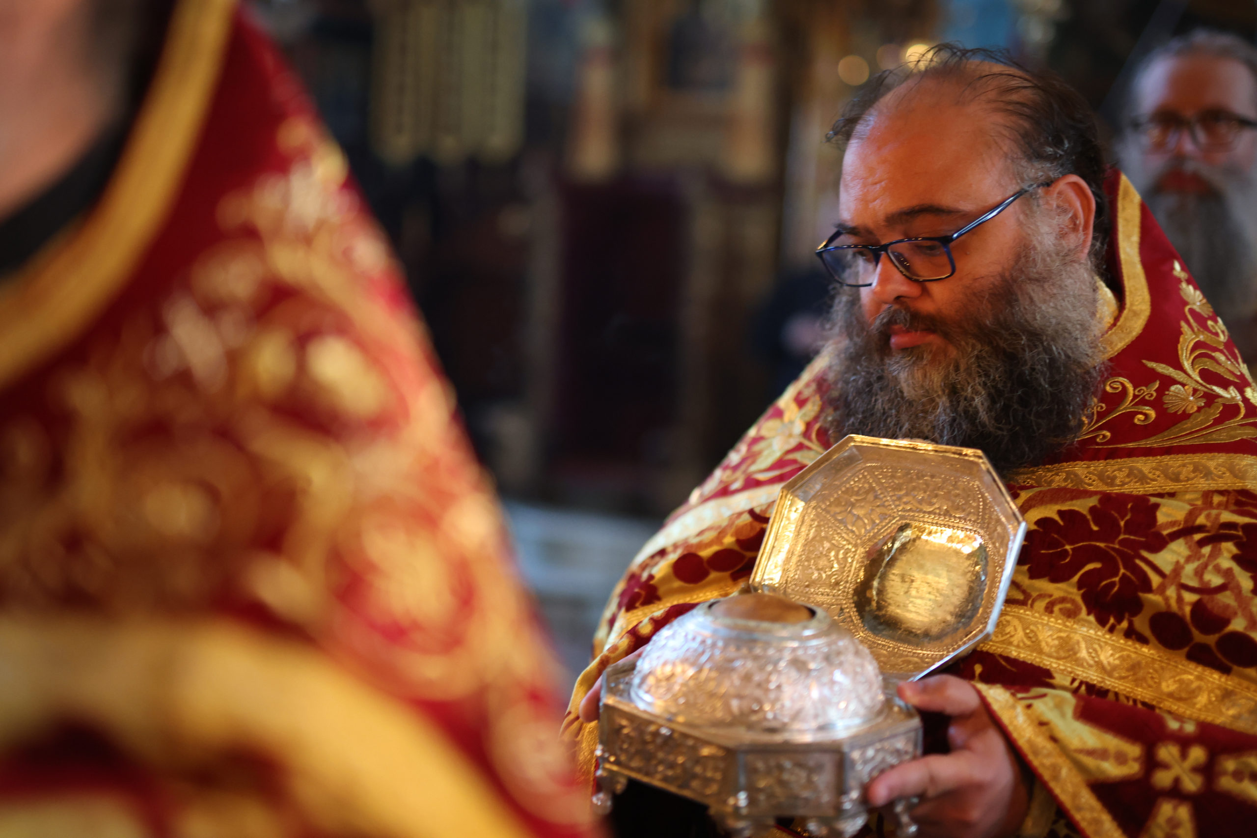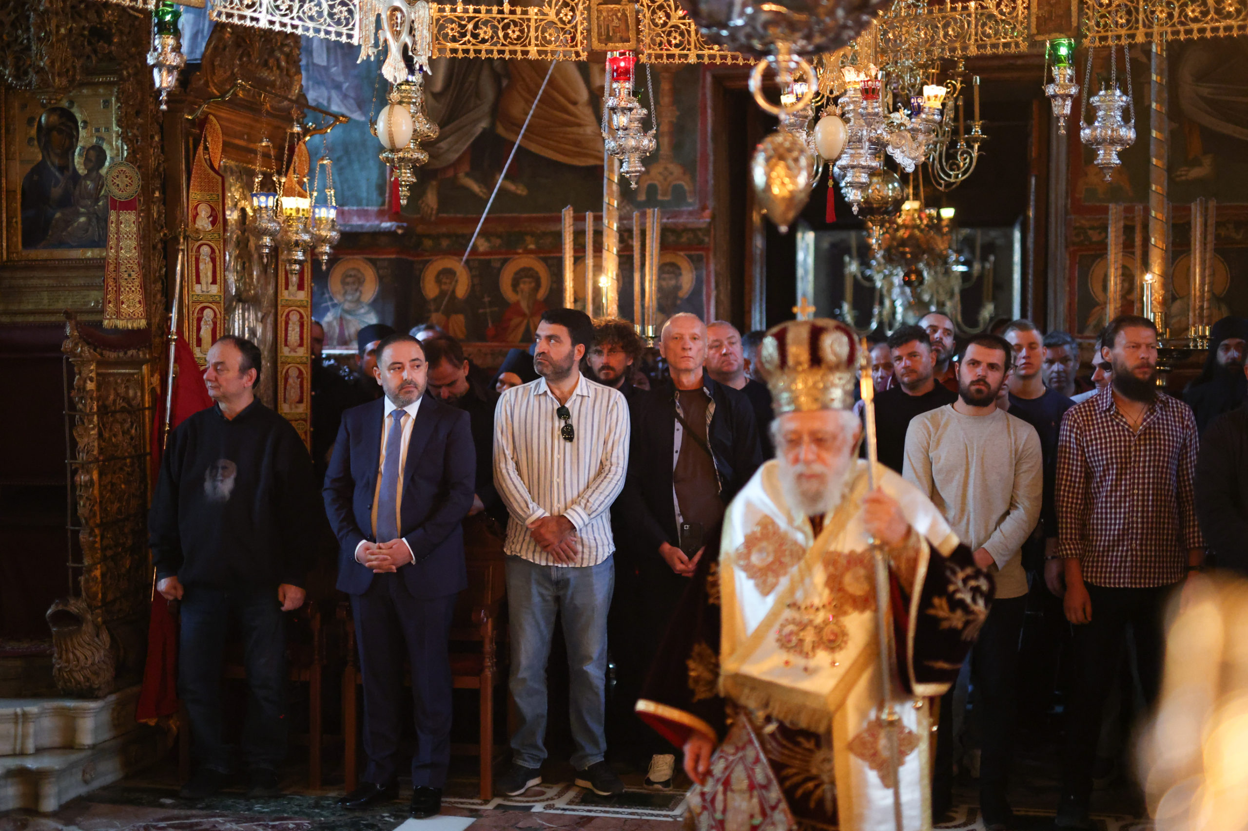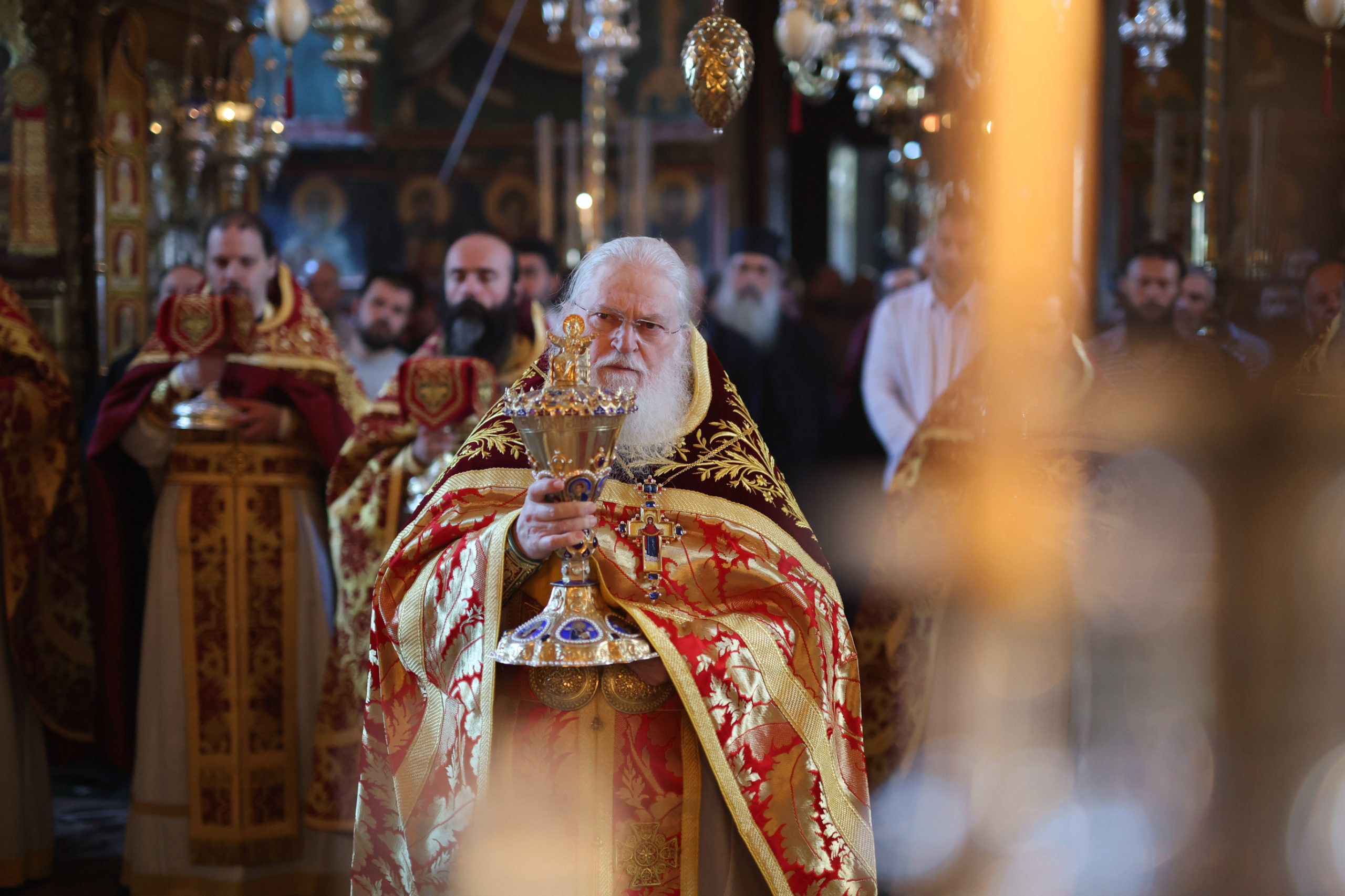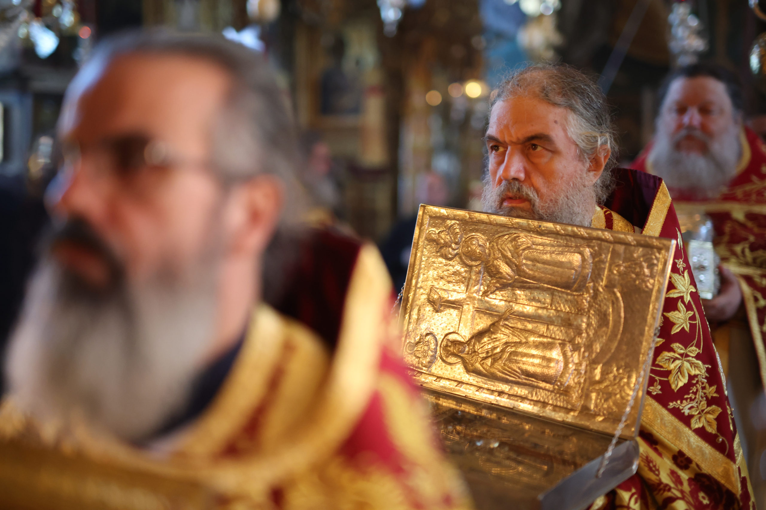 Στη συνέχεια τελέστηκε η Θεία Λειτουργία ιερουργούντος του Μητροπολίτη Κωνσταντίας και Αμμοχώστου κ. Βασιλείου. Τον Πανιερώτατο πλαισίωσε ο Καθηγούμενος της Μονής Βατοπαιδίου Γέροντας Εφραίμ, ιερομόναχοι εκπρόσωποι Ι.Μ. και κελιών, ιερείς και διάκονοι.