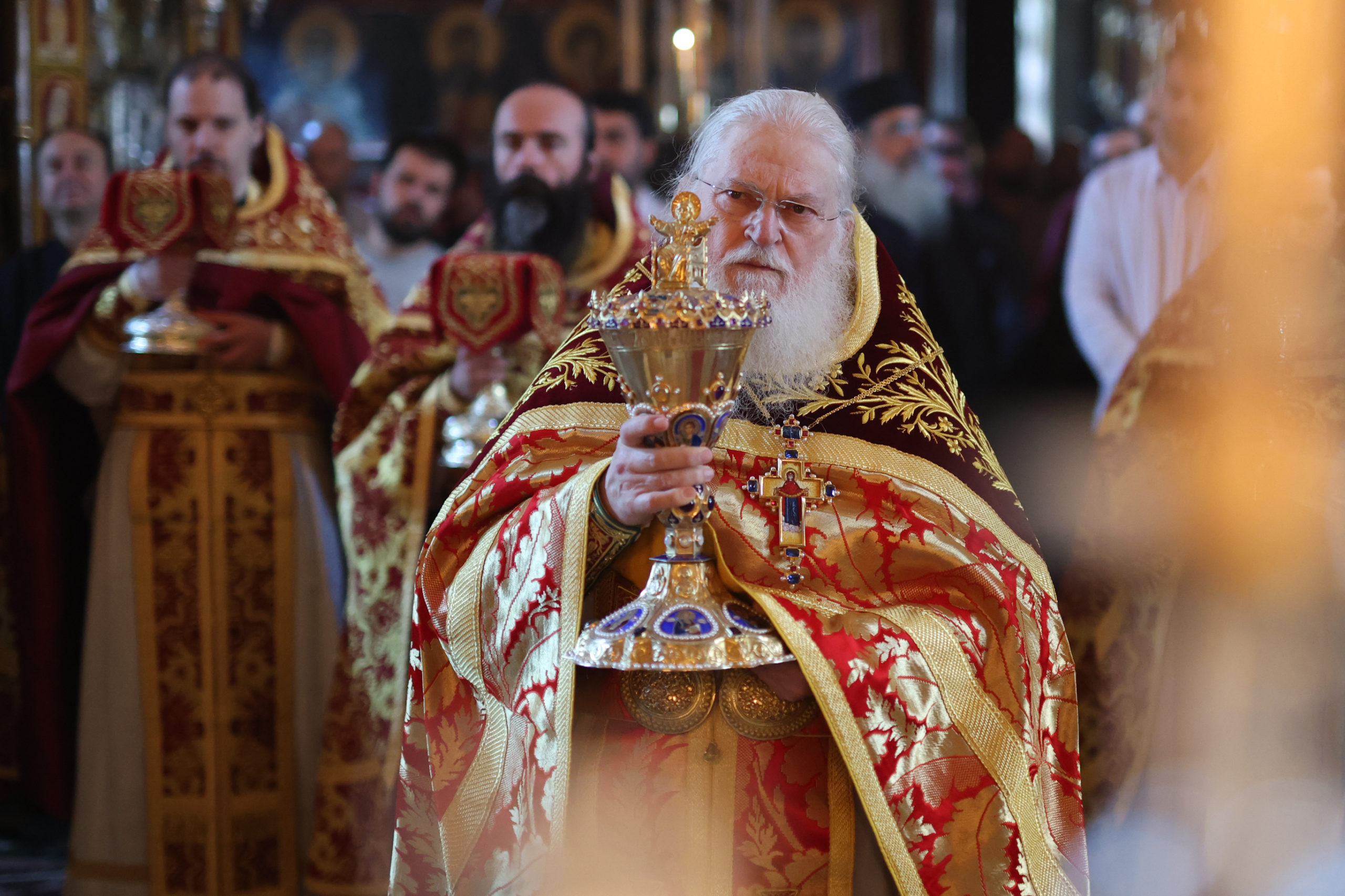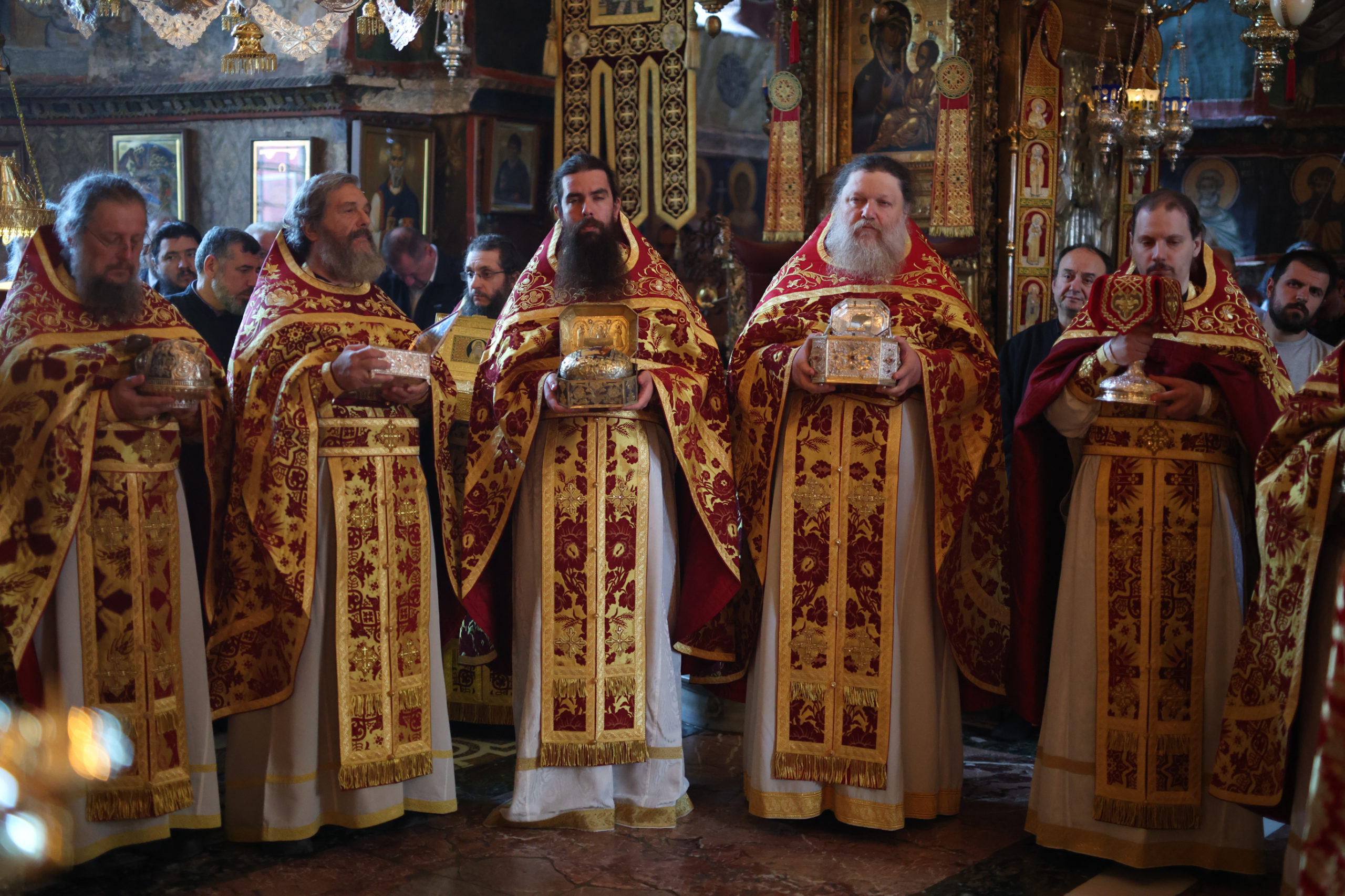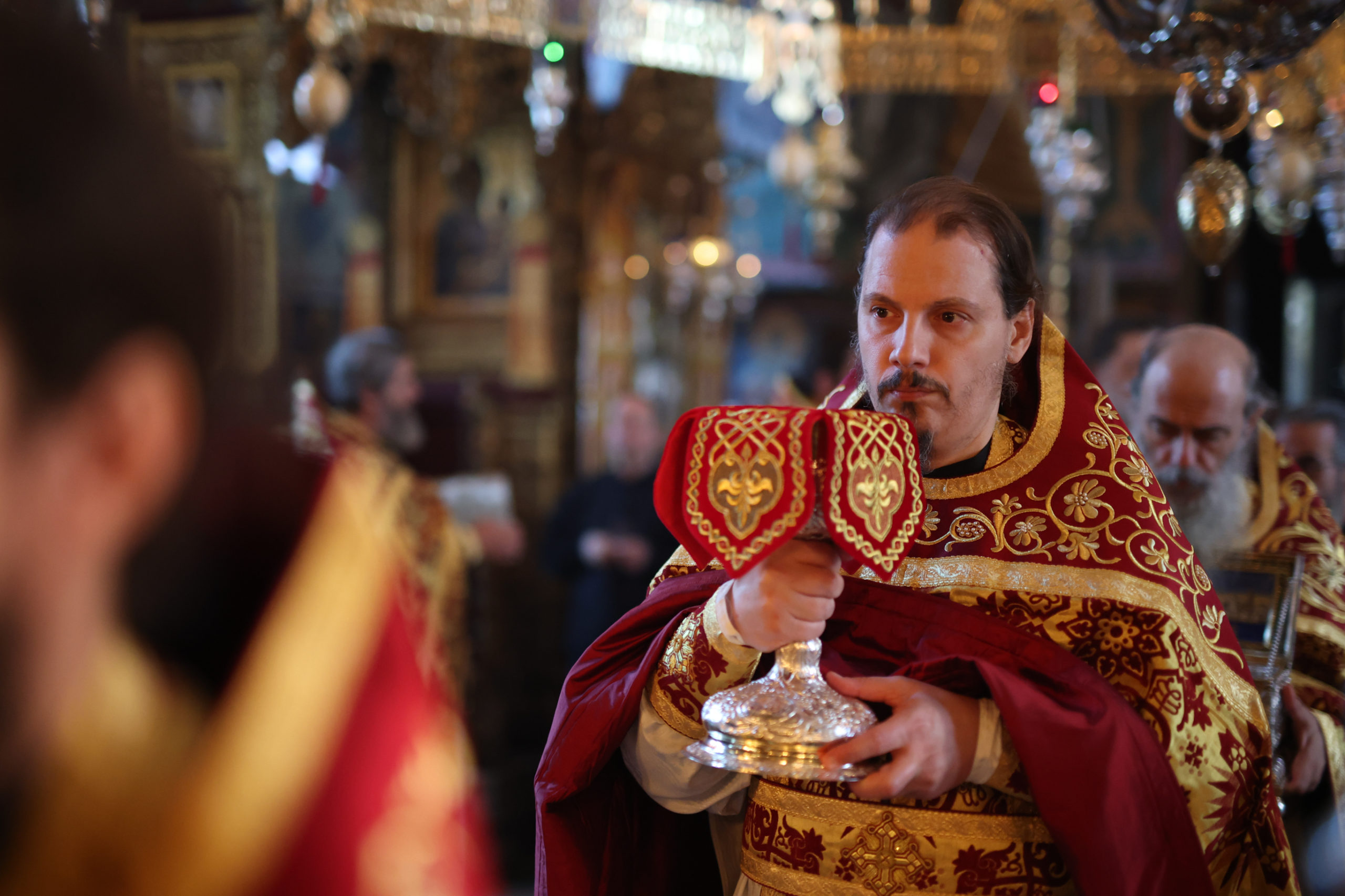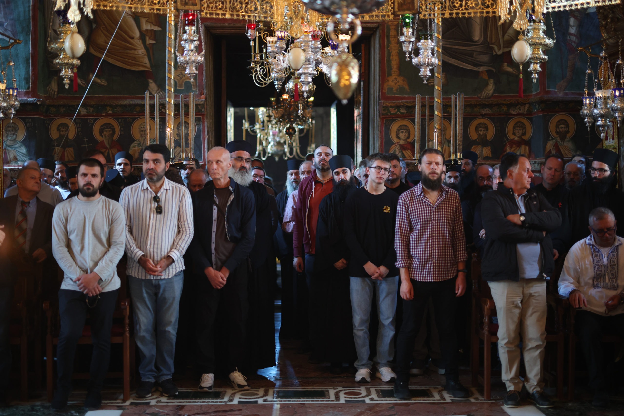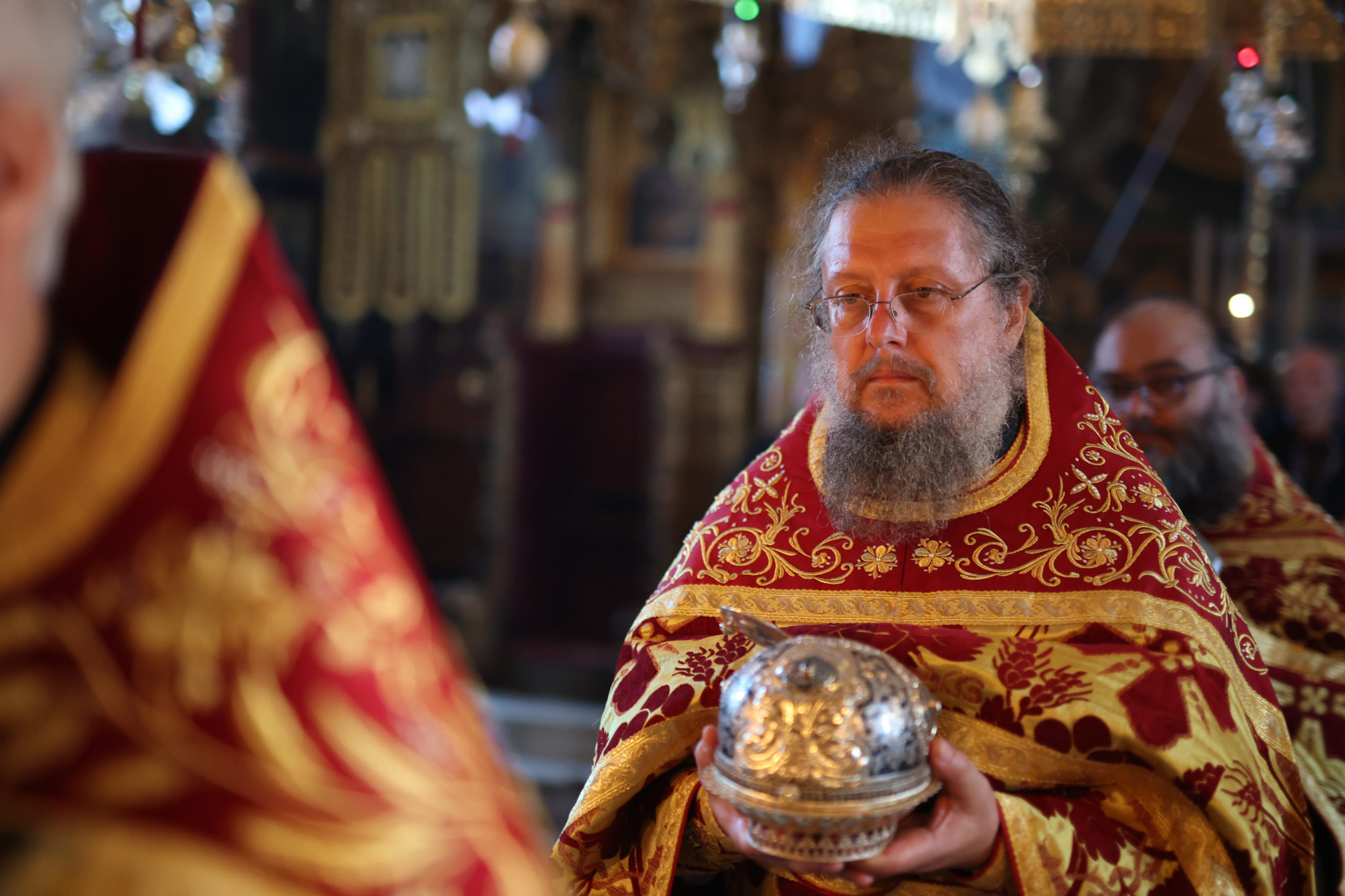 Στη συνέχεια τελέστηκε η Θεία Λειτουργία ιερουργούντος του Μητροπολίτη Κωνσταντίας και Αμμοχώστου κ. Βασιλείου. Τον Πανιερώτατο πλαισίωσε ο Καθηγούμενος της Μονής Βατοπαιδίου Γέροντας Εφραίμ, ιερομόναχοι εκπρόσωποι Ι.Μ. και κελιών, ιερείς και διάκονοι.