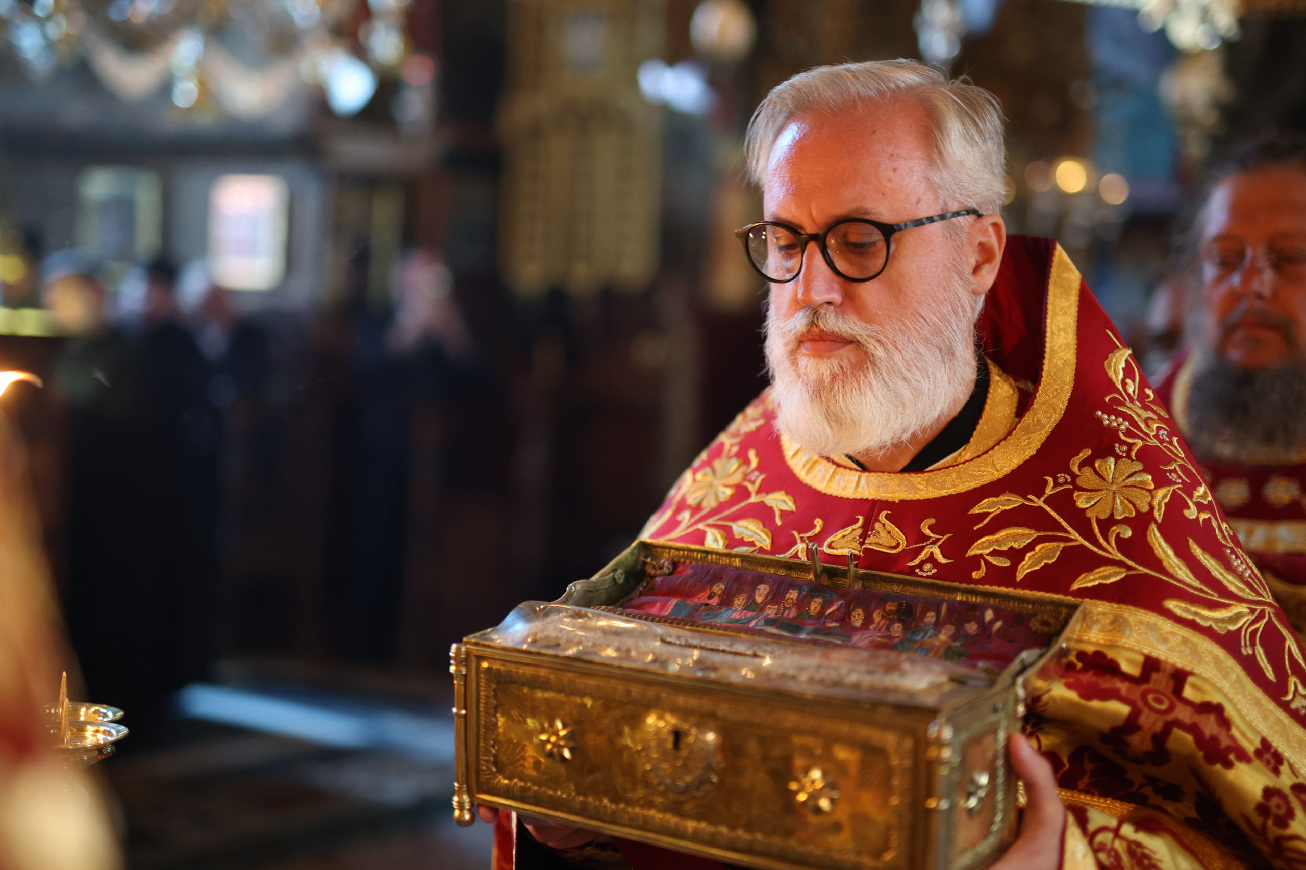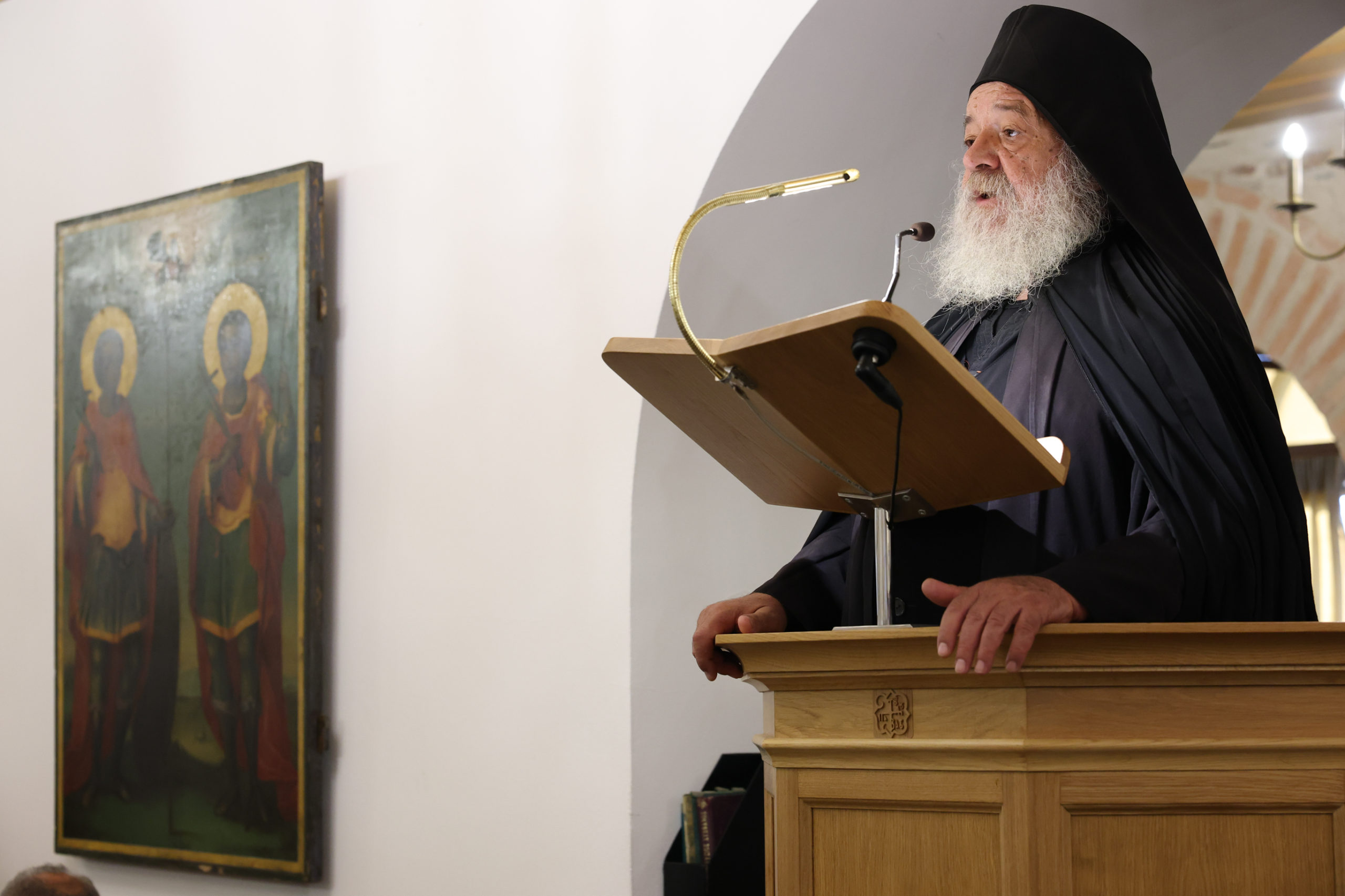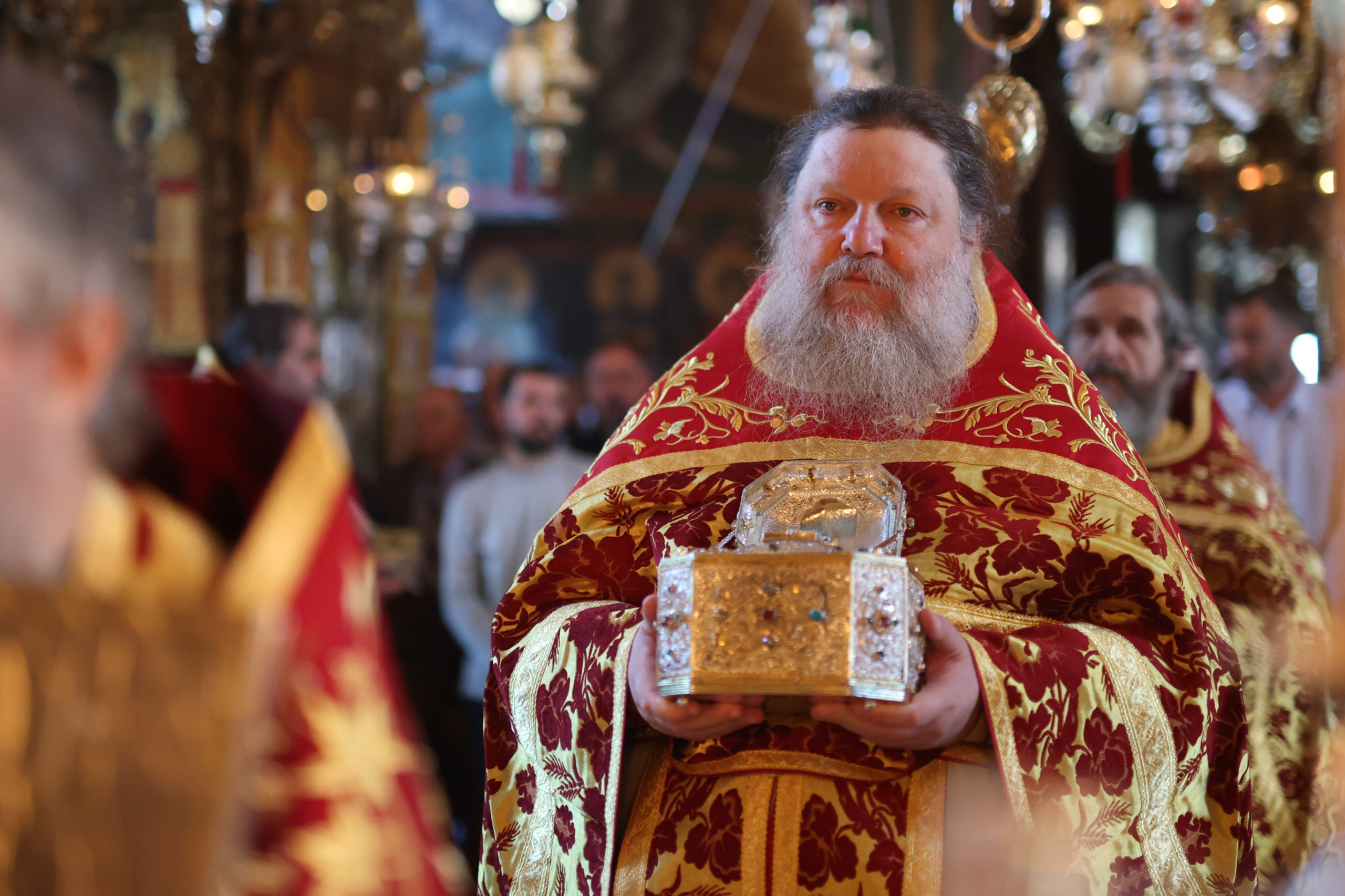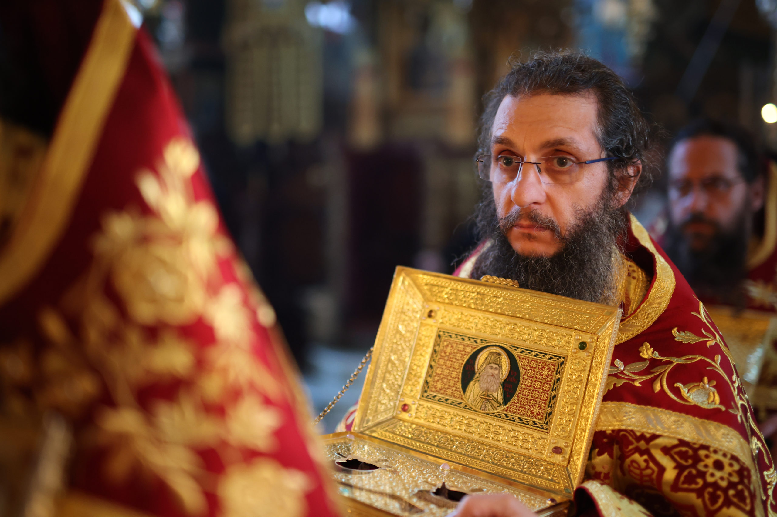 Στο πλαίσιο των πανηγυρικών εορτασμών, κατόπιν προσκλήσεως του Καθηγουμένου Γέροντος Εφραίμ, των ιερών ακολουθιών προέστη ο Πανιερώτατος Μητροπολίτης Κωνσταντίας και Αμμοχώστου κ. Βασίλειος.