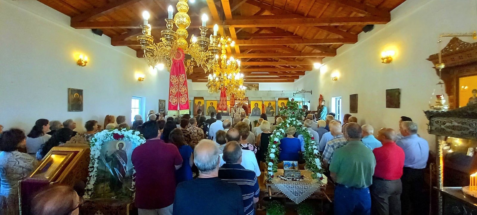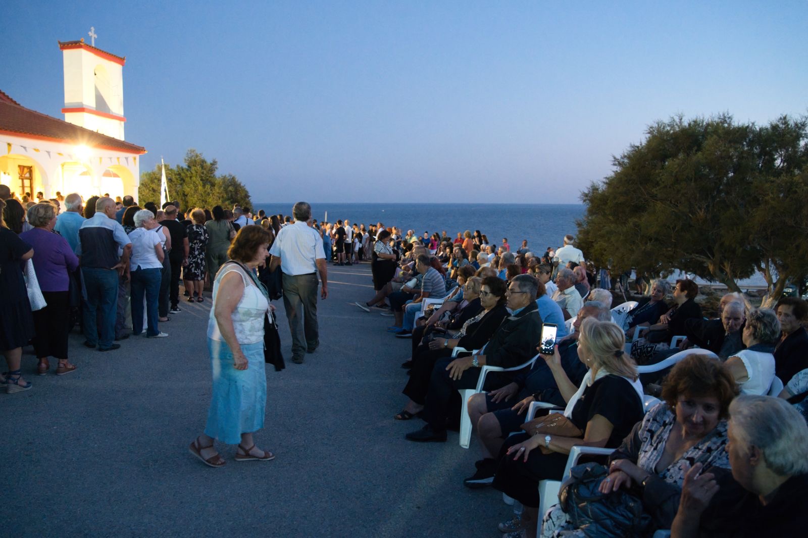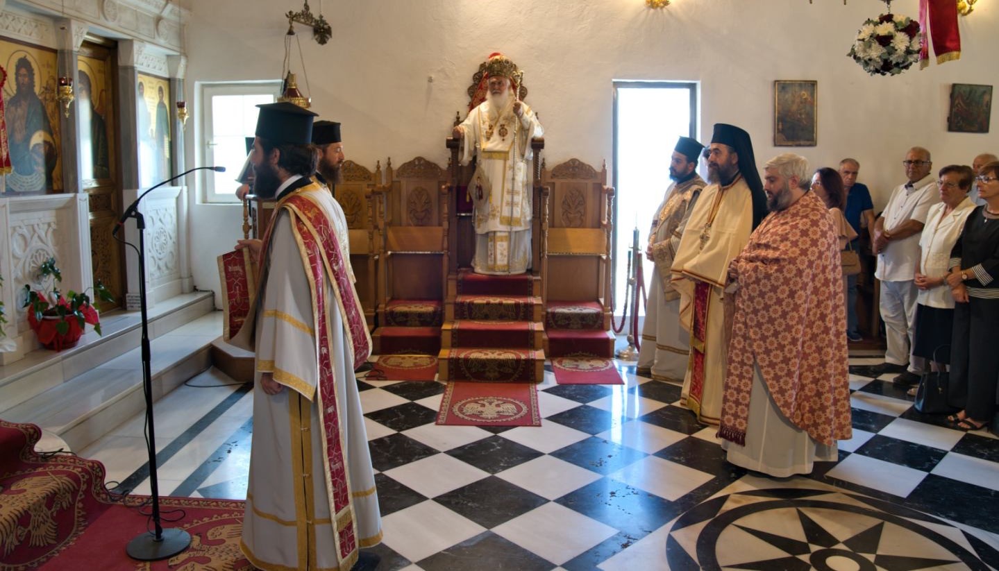 Επίκεντρο των λατρευτικών εκδηλώσεων έγινε και εφέτος ο Ιερός Προσκυνηματικός Ναός του Αγίου, ο οποίος, ως άσβεστος πνευματικός φάρος, δεσπόζει στο νοτιοανατολικό άκρο του νησιού μας και από εκεί ακτινοβολεί τη λάμψη του στα νερά του Αρχιπελάγους. Σε αυτό το σημείο, κατά την παράδοση, ένας ταπεινός βοσκός βρήκε δι’ οράματος την περίπυστη εικόνα του Μάρτυρος και ανήγειρε τον Ιερό Ναό του.
