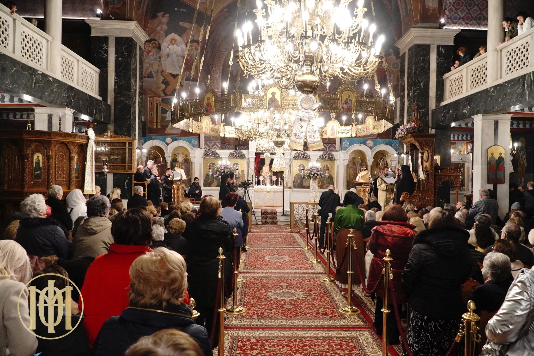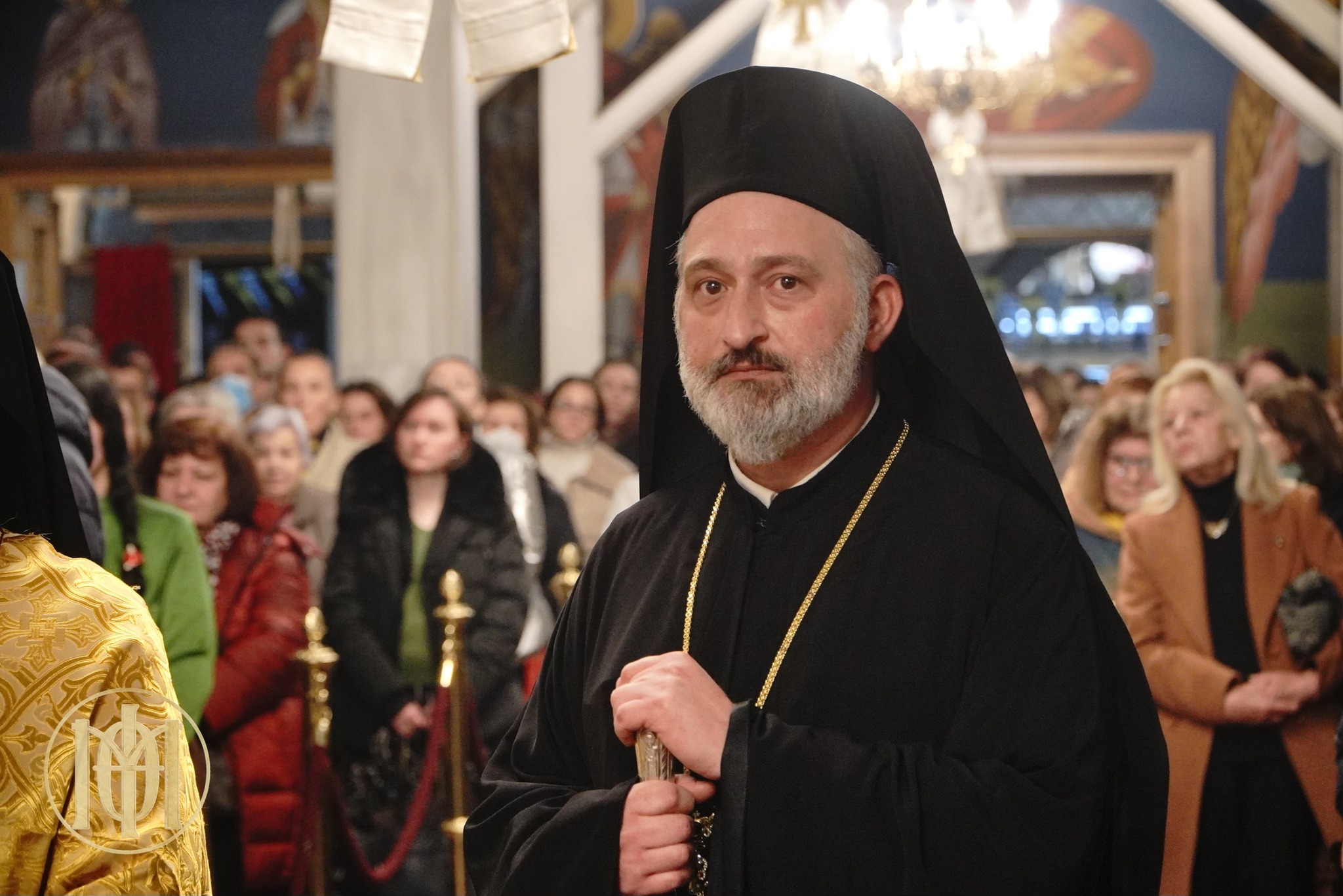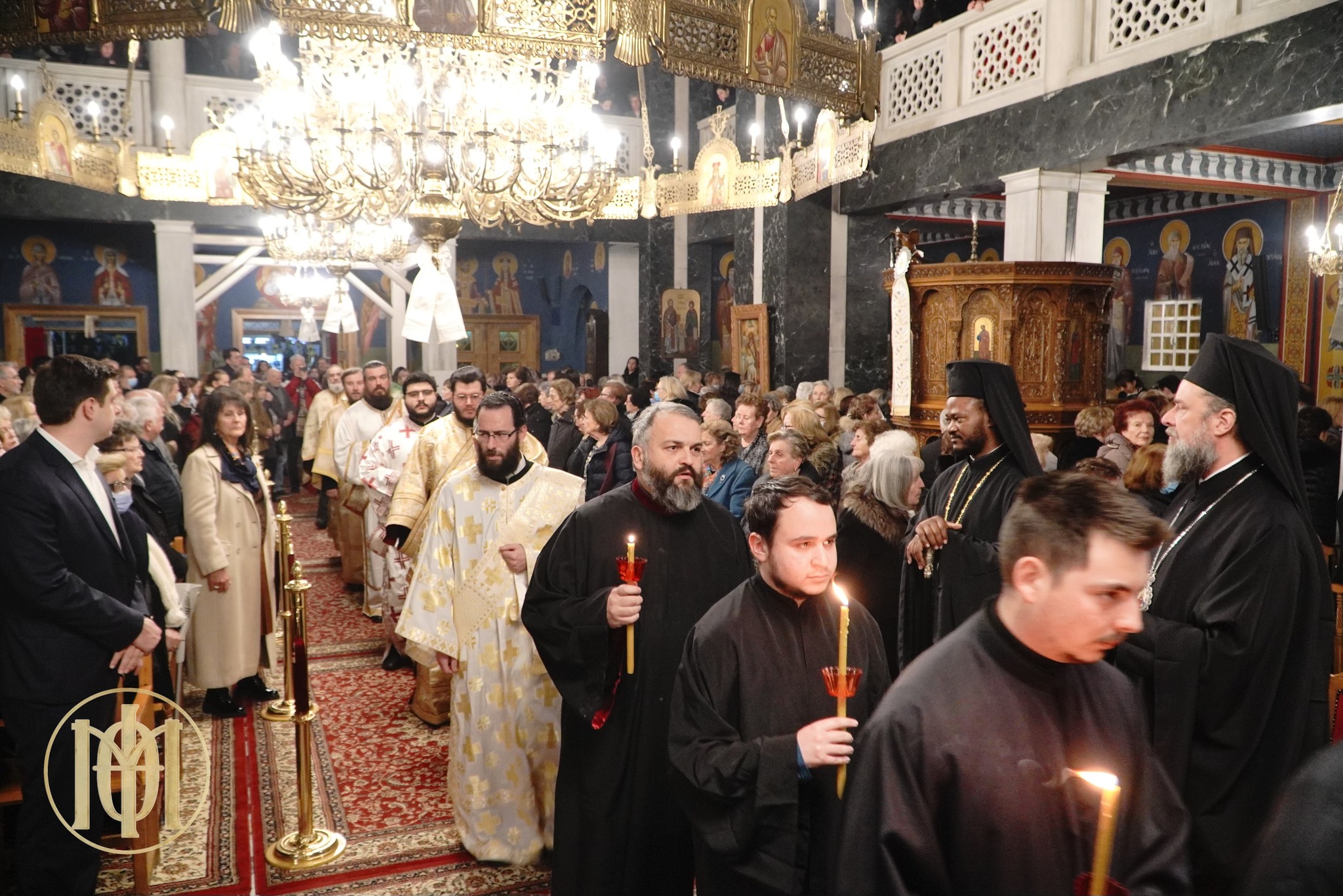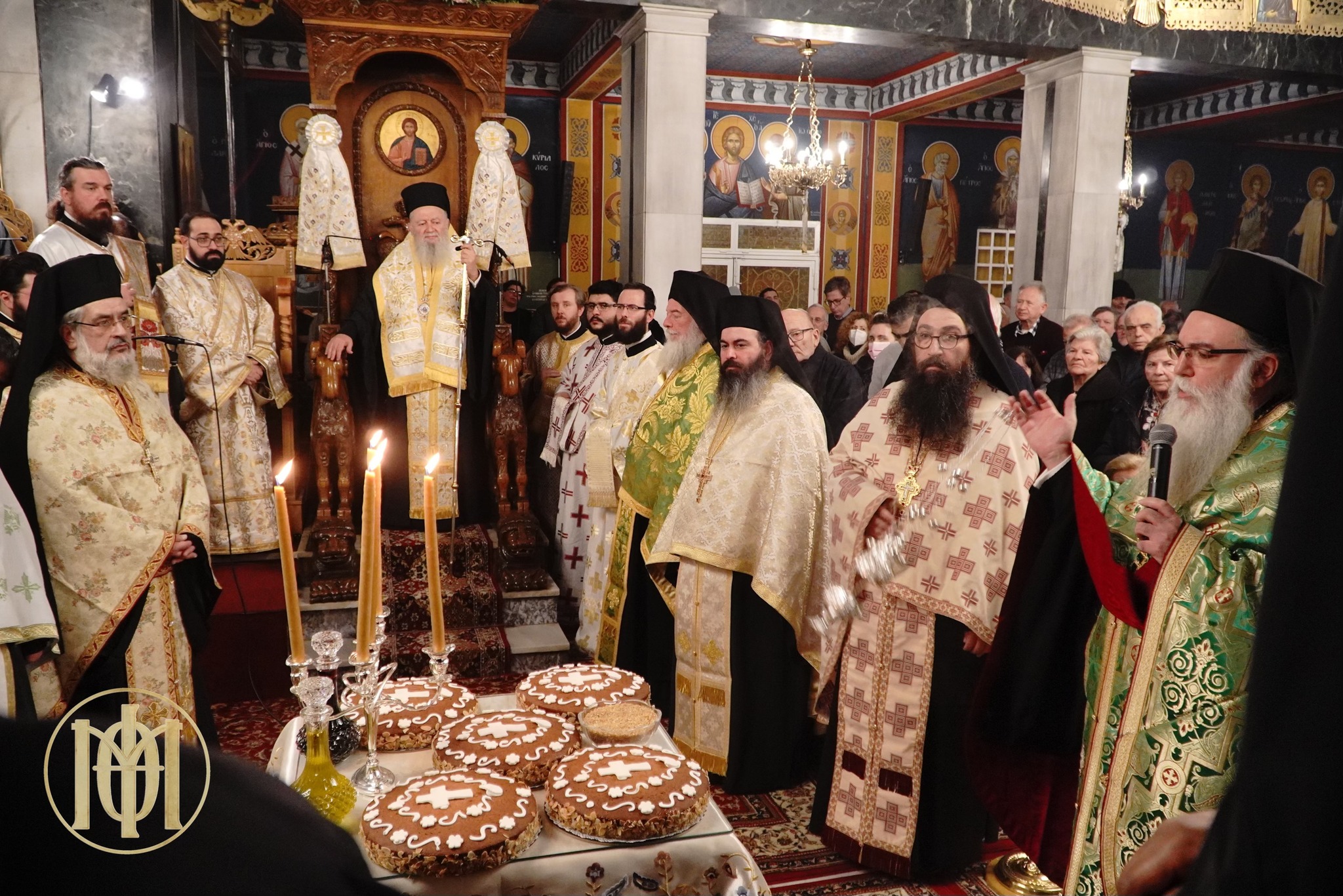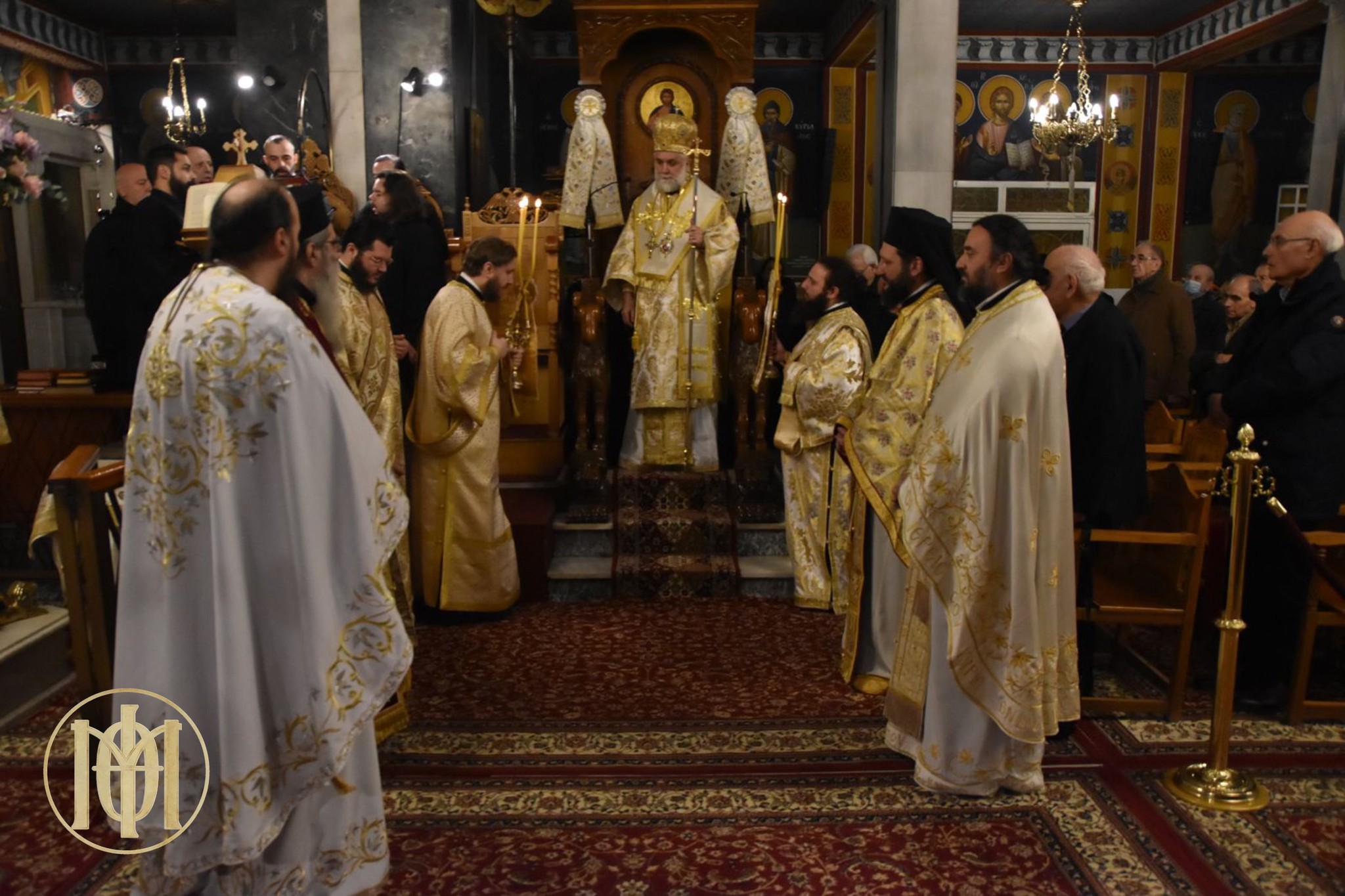 Στον πανηγυρικό Αρχιερατικό Εσπερινό συγχοροστάτησαν ο Θεοφιλέστατος Επίσκοπος Μπενίν, Τόγκο και Μπουρκίνα Φάσο κ. Αθανάσιος εκ του Πατριαρχείου Αλεξανδρείας και ο Ποιμενάρχης, Μητροπολίτης Θεσσαλονίκης κ. Φιλόθεος, ενώ στο Ιερό Βήμα παρέστη συμπροσευχόμενος ο Σεβασμιώτατος Μητροπολίτης Βρυούλων κ. Παντελεήμων.