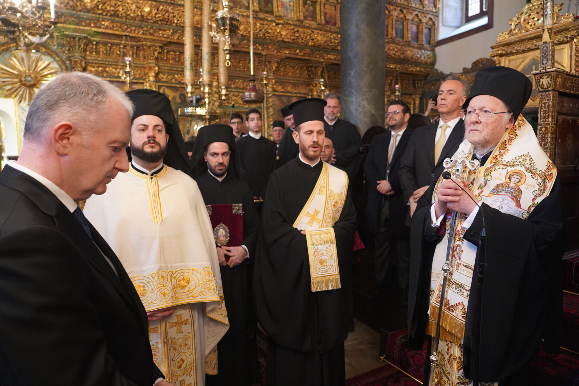 Ο Παναγιώτατος είπε ότι από σήμερα ο νέος Άρχων θα αποτελεί μέλος της Αδελφότητος Οφφικιαλίων του Οικουμενικού Πατριαρχείου “Παναγία η Παμμακάριστος”, και ολοκληρώνοντας την ομιλία του σημείωσε εμφατικά: