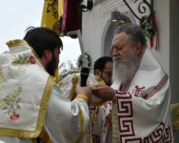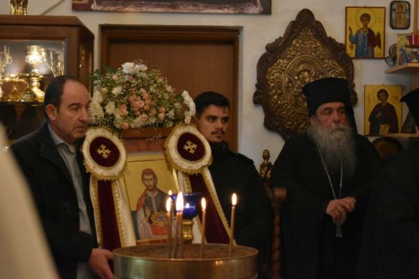 Πριν την απόλυση, έλαβε χώρα μικρή λιτανεία πέριξ του εξωκκλησίου, κατά το τέλος της οποίας ο π. Δαμασκηνός, εις ένδειξη ευγνωμοσύνης επέδωσε στον Σεβασμιώτατο αναμνηστικό χειρόγραφο, για τη συμπλήρωση 25 ετών Αρχιερατικής Διακονίας του στην τοπική μας Εκκλησία.