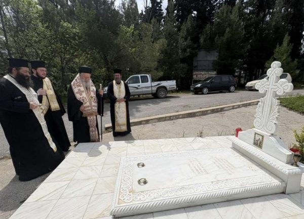 Αμέσως μετά, ο Σεβασμιώτατος κ. Χρυσόστομος, συνοδευόμενος από τον Αρχιερατικό Επίτροπο Ιστιαίας, πρωτοπρεσβ. Ιωάννη Θάνο, μετέβη στον υπό αποπεράτωση Ι. Ναό της αγίας μυροφόρου και ισαποστόλου Μαρίας της Μαγδαληνής του ομώνυμου Ιεραποστολικού Κέντρου, όπου τέλεσε νεκρώσιμο τρισάγιο επί του τάφου του μακαριστού κτήτορά του αρχιμ. Ιγνατίου Καπνίση.
