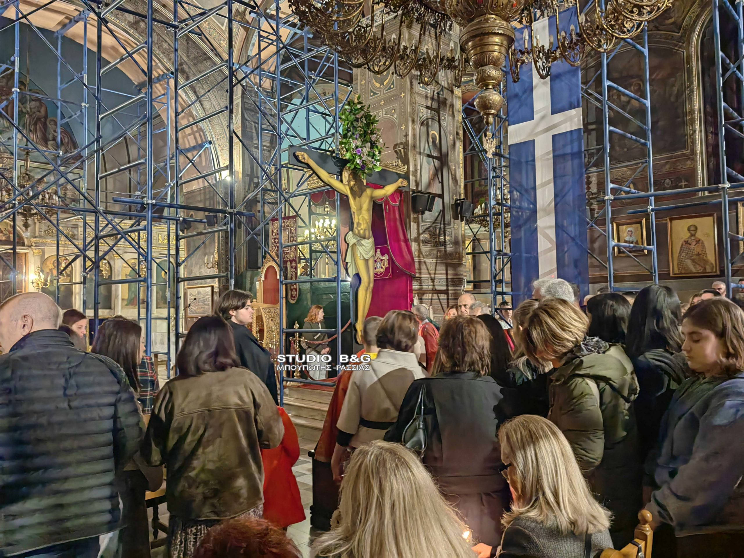 Κάθε χρόνο εκατοντάδες πιστοί συγκεντρώνονται στον ιστορικό Μητροπολιτικό ναό του Αγίου Γεωργίου για να παρακολουθήσουν τις ακολουθίες της Μεγάλης Εβδομάδας. Σε κλίμα ευλάβειας και βαθιάς κατάνυξης, ντόπιοι και επισκέπτες του Ναυπλίου το απόγευμα της Μεγάλης Πέμπτης γέμισαν τους Ιερούς Ναούς της πόλης για να παρακολουθήσουν την πορεία του Θεανθρώπου Ιησού Χριστού προς το σταυρικό μαρτύριο του Γολγοθά.
