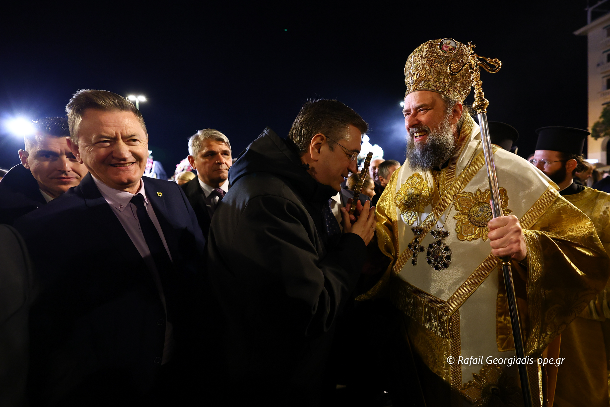 Της δέησης προεξήρχε ο Μητροπολίτης Θεσσαλονίκης κ.Φιλόθεος, ο οποίος στο σύντομο μήνυμά του ανέδειξε το βαθύτερο νόημα της Ανάστασης, καλώντας τους πιστούς σε συμφιλίωση με τον Θεό. Όπως τόνισε, «ο θάνατος του Χριστού δεν αποτελεί απλώς ένα τραγικό γεγονός της ιστορίας, αλλά μια ζωντανή πραγματικότητα που αφορά το σήμερα και τη ζωή όλων μας».