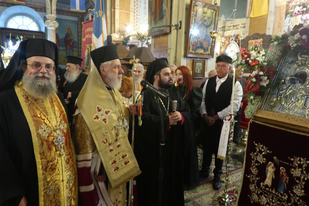 Ευχαρίστησε τον Αρχιμ. Ραφαήλ Κατακεχαγιά, μνησθείςτης κοινής διακονίας τους στην Ιερά Σύνοδο, και τον Ιεροψάλτη κ. Απόστολο Ντέτσικα, που τον συνόδευσε, συνεχάρη τον Πρόεδρο της Εκκλησιαστικής Επιτροπής του Ναού, Αρχιμ. Νικόλαο Γαβαλλά, ο οποίος επιμελήθηκε κατά τρόπο άψογο τις Εκδηλώσεις, και ευχήθηκε σε όλους έτη πολλά και Αναστάσιμα.