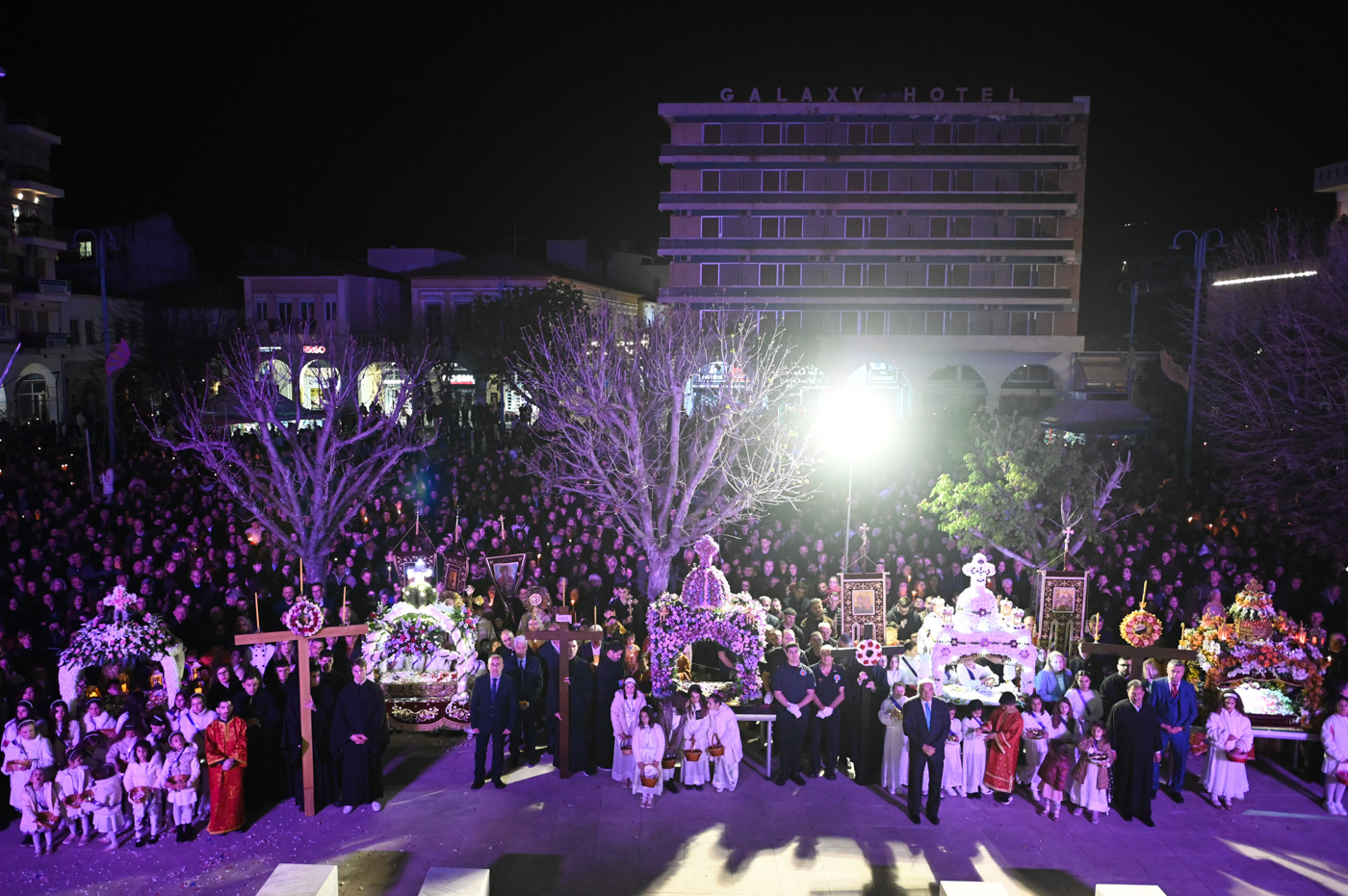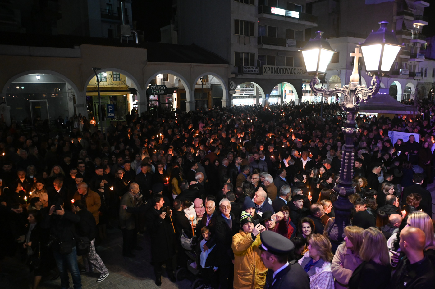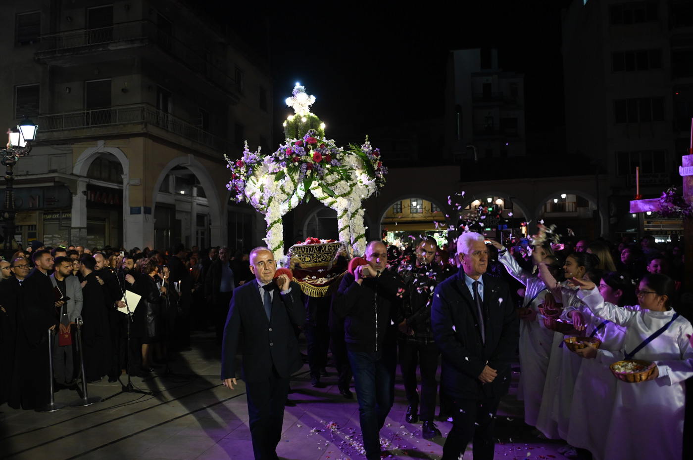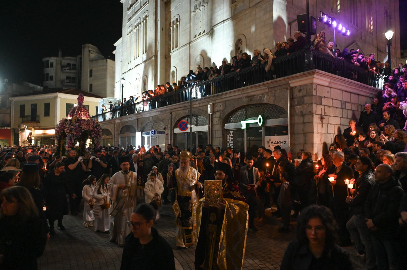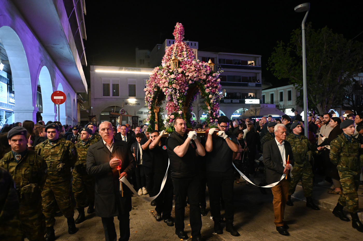 Ακολούθως, τελέσθηκε η περιφορά του Επιταφίου πέριξ του Μητροπολιτικού Ναού, όπου έμπροσθεν αυτού, στην κεντρική πλατεία πραγματοποιήθηκε η συνάντηση των Επιταφίων ενοριών της Τρίπολης. Ο Μητροπολίτης κ. Επιφάνιος, συμπαραστατούμενος από τον Θεοφιλ. Επίσκοπο Τεγέας και από Ιερείς ανέπεμψαν δέηση ενώπιον πλήθους πιστών που κατέκλυσαν την κεντρική πλατεία.