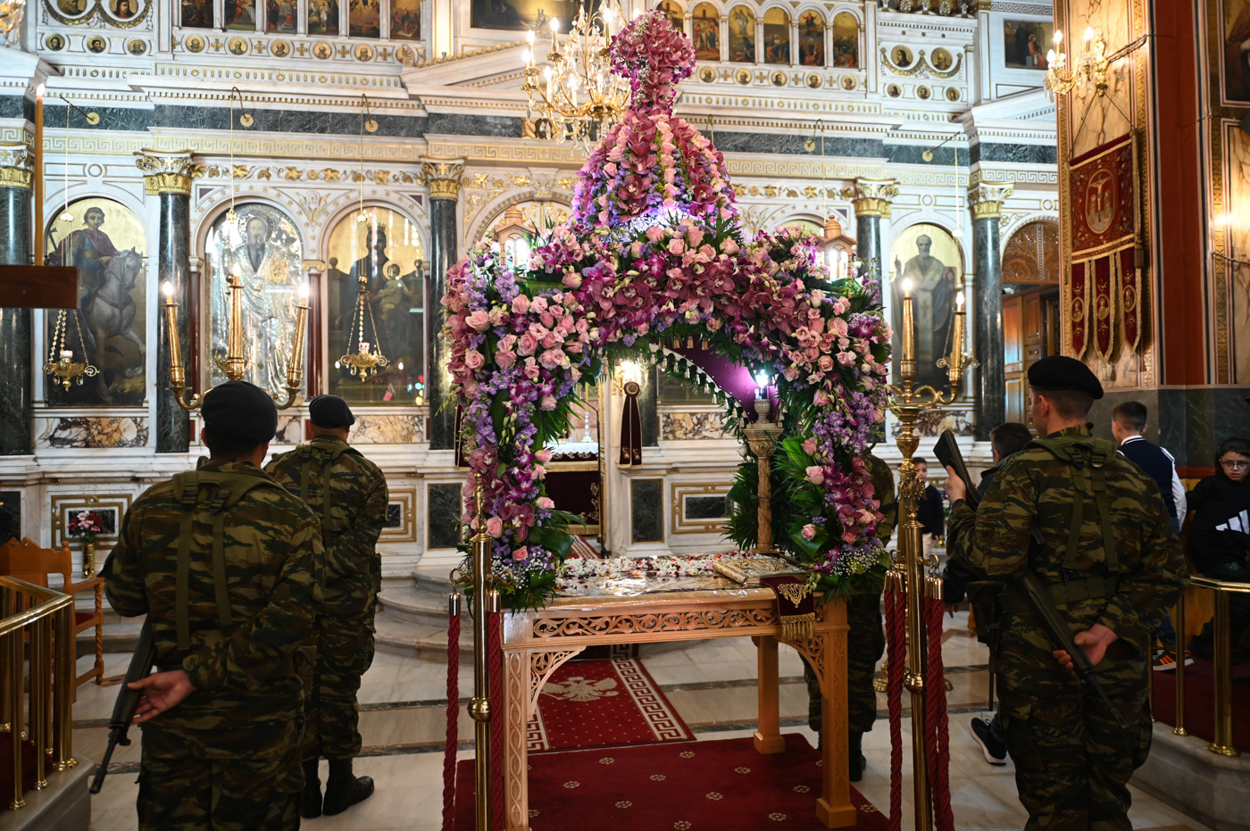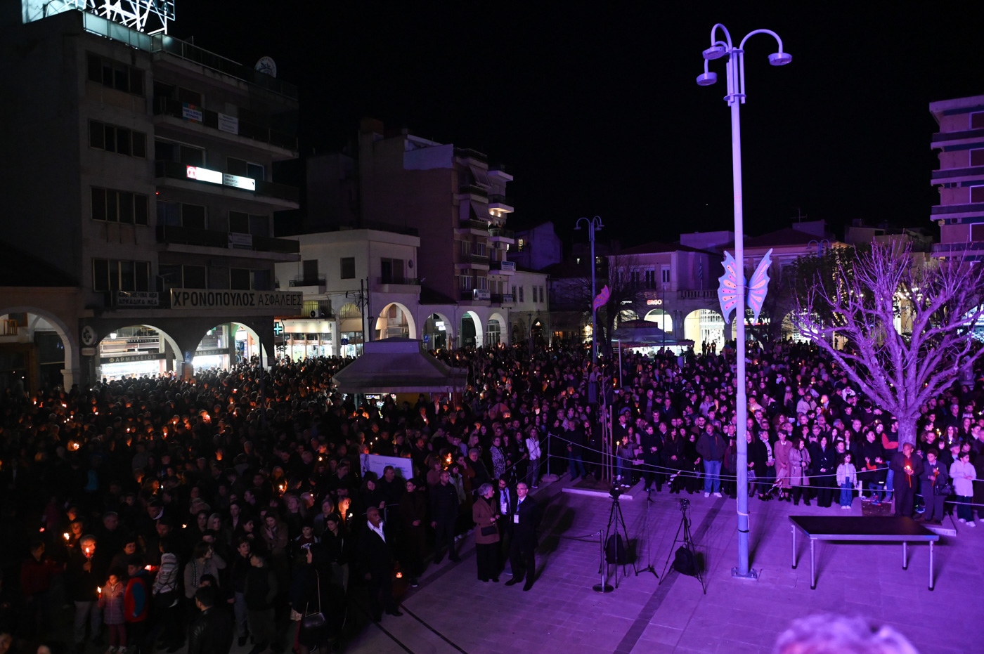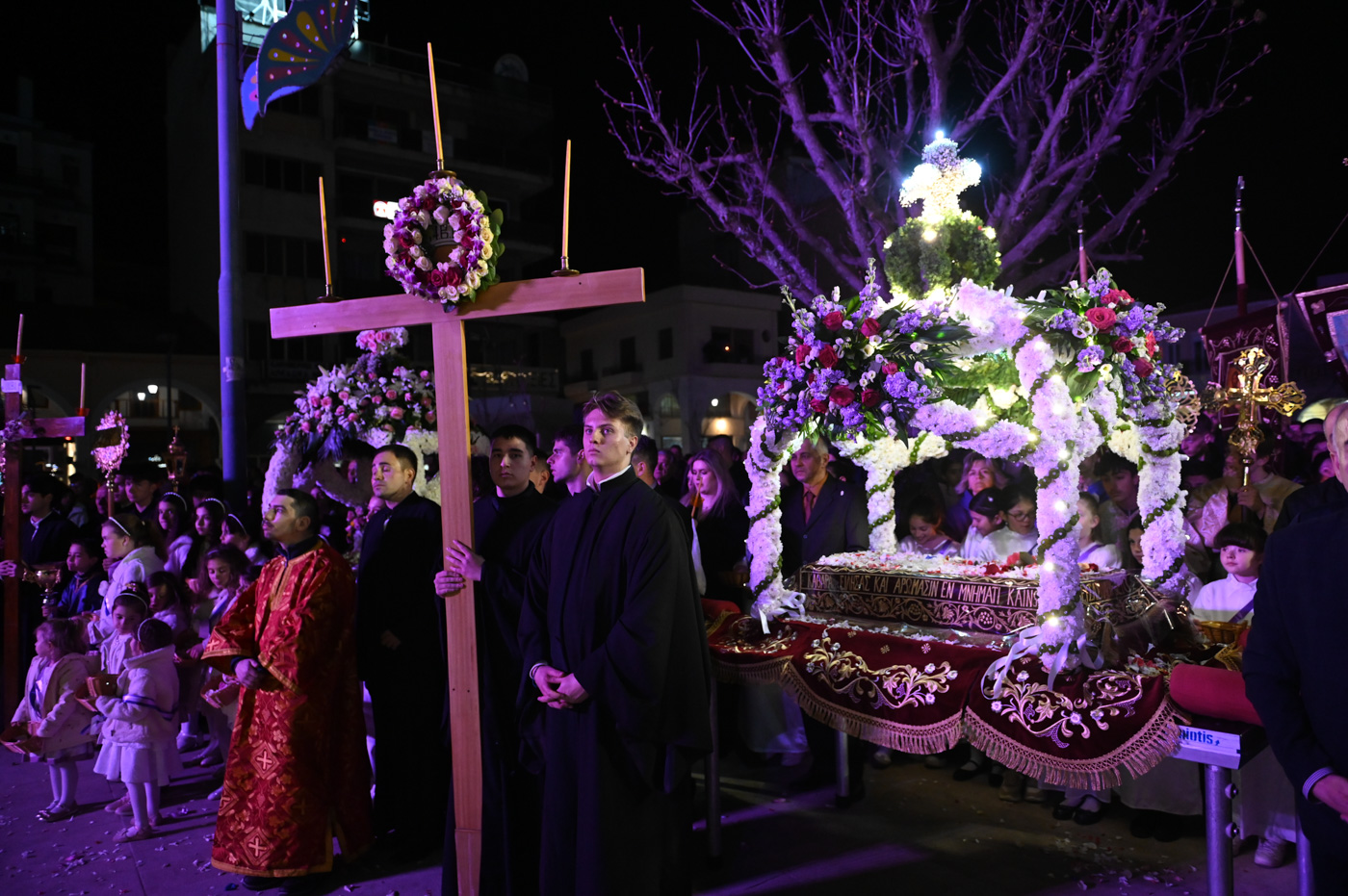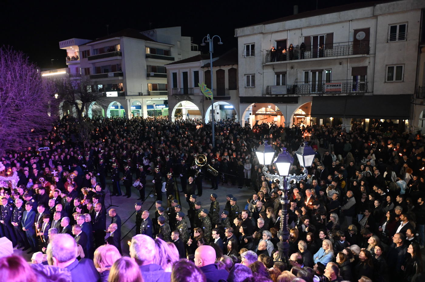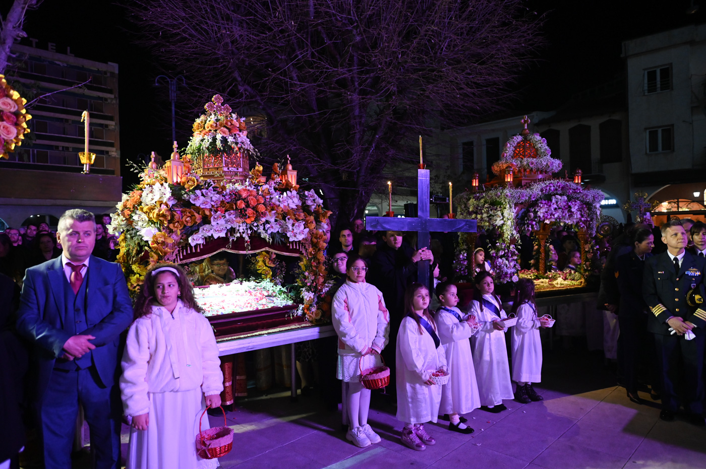 Ακολούθως, τελέσθηκε η περιφορά του Επιταφίου πέριξ του Μητροπολιτικού Ναού, όπου έμπροσθεν αυτού, στην κεντρική πλατεία πραγματοποιήθηκε η συνάντηση των Επιταφίων ενοριών της Τρίπολης. Ο Μητροπολίτης κ. Επιφάνιος, συμπαραστατούμενος από τον Θεοφιλ. Επίσκοπο Τεγέας και από Ιερείς ανέπεμψαν δέηση ενώπιον πλήθους πιστών που κατέκλυσαν την κεντρική πλατεία.